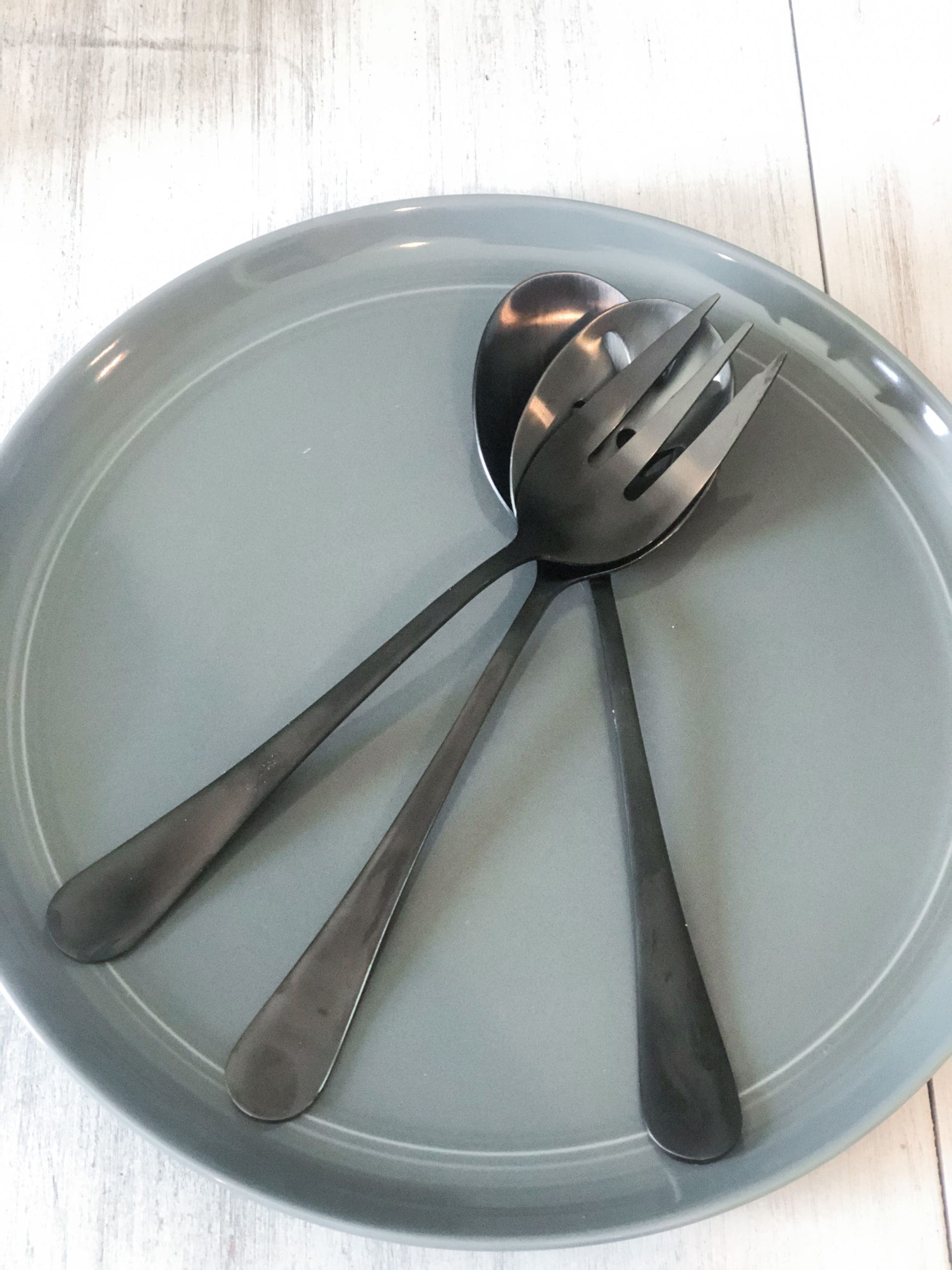 After almost 10 years of owning our previous silverware set, we often find ourselves with no forks to eat with, TONS of spoons though. I’m guessing several of the forks have made their way into the silverware drawer at our respective employers, other people’s houses, thrown out with lunch boxes, etc. Since I seem to be on the hunt for making everything in my life grey, I decided to try out this dark grey set. We’ve been using it for about a month now and so far no scratches or finish coming off. I feel like the quality will be long lasting!