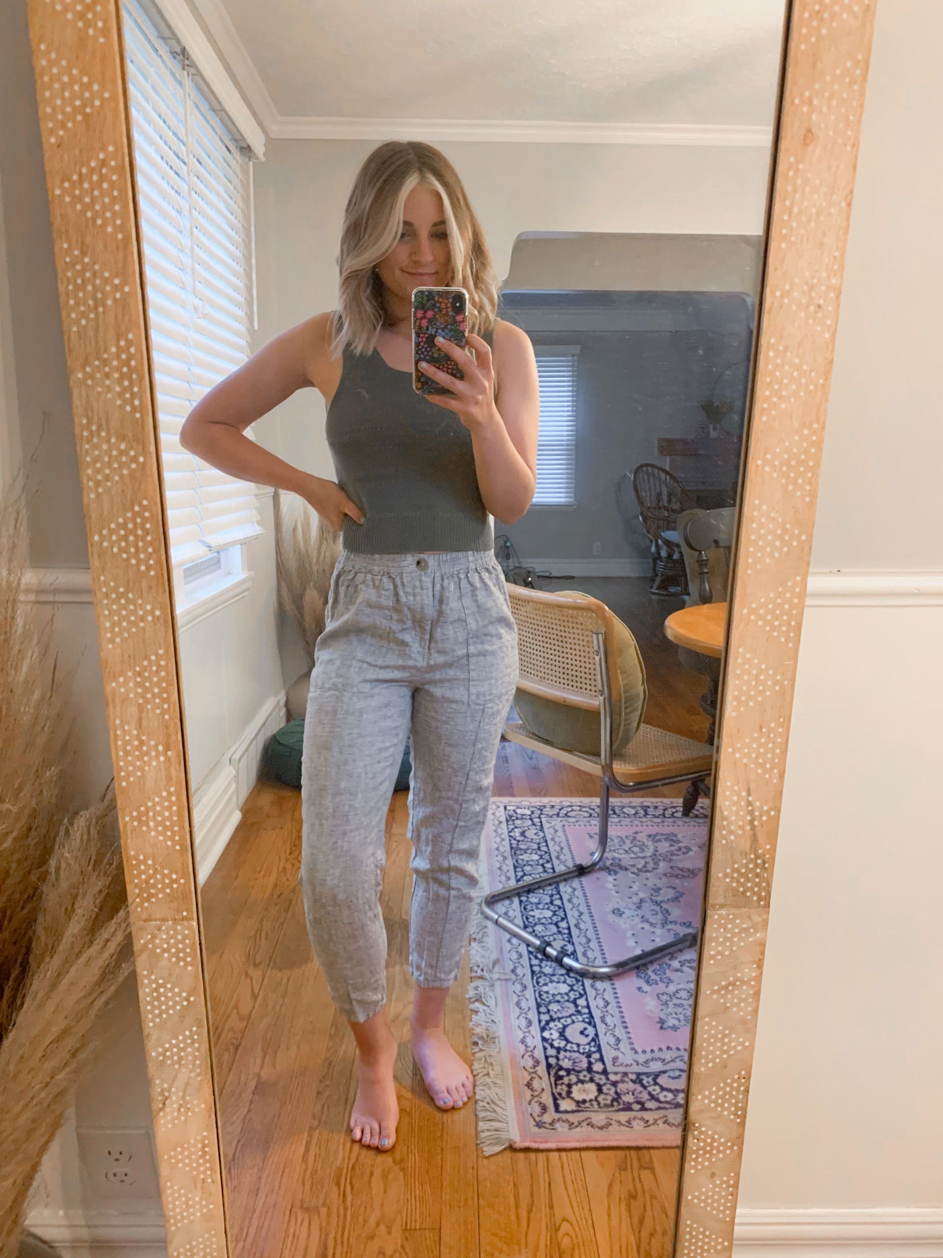 These linen pants are perfect as the temps rise! They are so comfortable and have an elastic waistband while still having a button and functional zipper! I love how they can be dressed up or down! I’m also loving this knit tank; ultra comfy and super breathable/lightweight!
