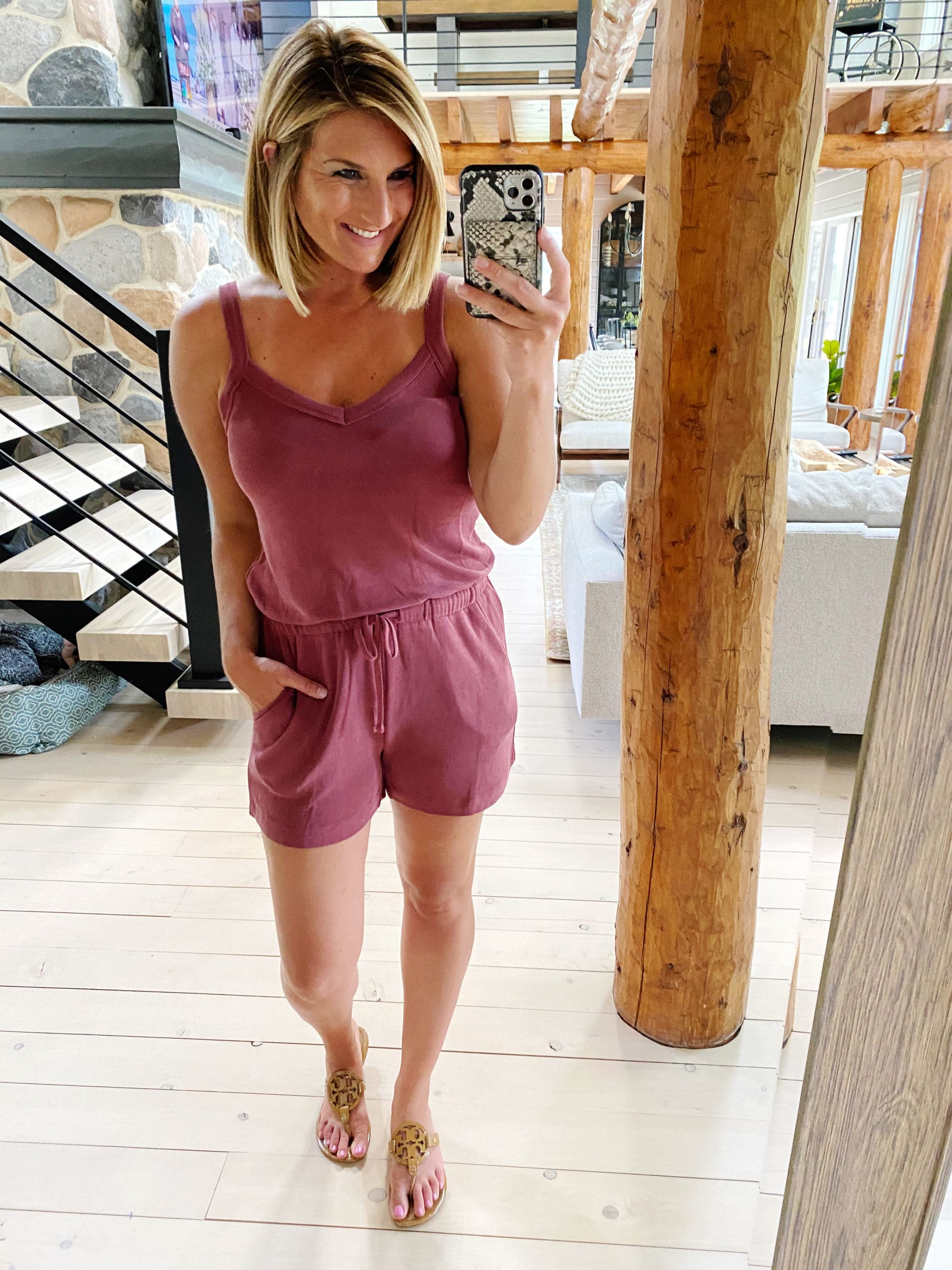 Daily Ritual Sandwashed Modal Romper [true to size, wearing in small] // Option with sleeves // Jumpsuit version // Tory Burch Miller Sandals [size up .5]