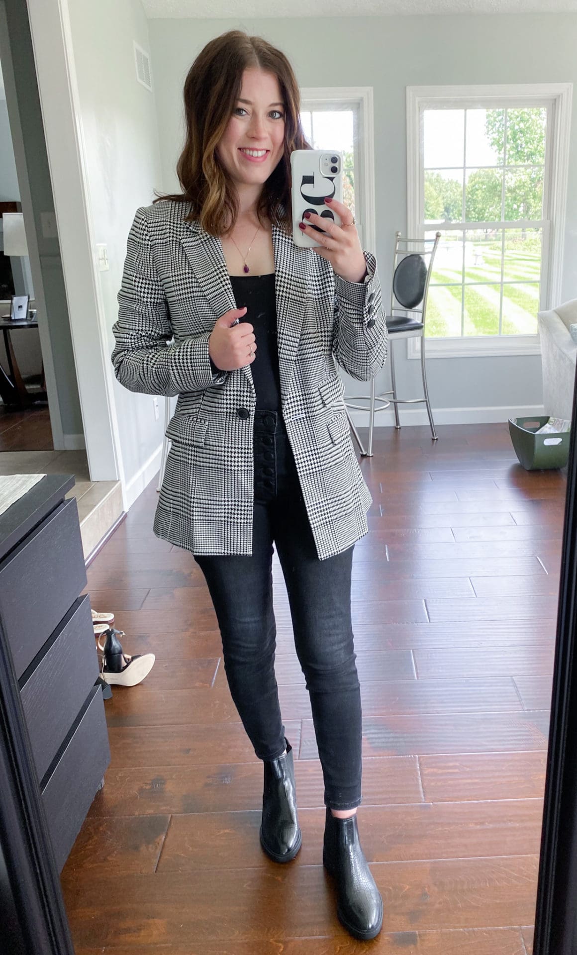 Blazer [Size Down if in Between] // Bodysuit [Size Up] // Jeans [Size Down if in Between] // Croc Chelsea Boots [TTS]
