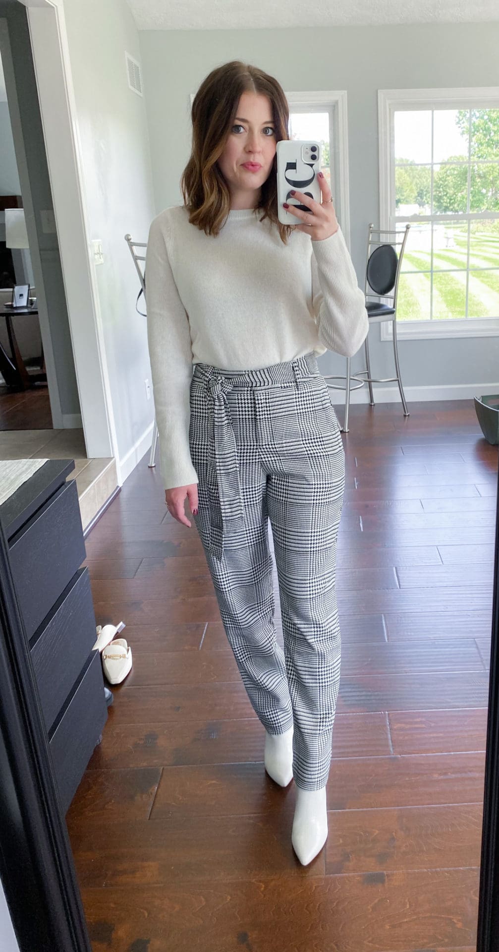 Cashmere Sweater [TTS] // Tie Waist Pants [TTS] // White Booties [Order Up ½ Size]