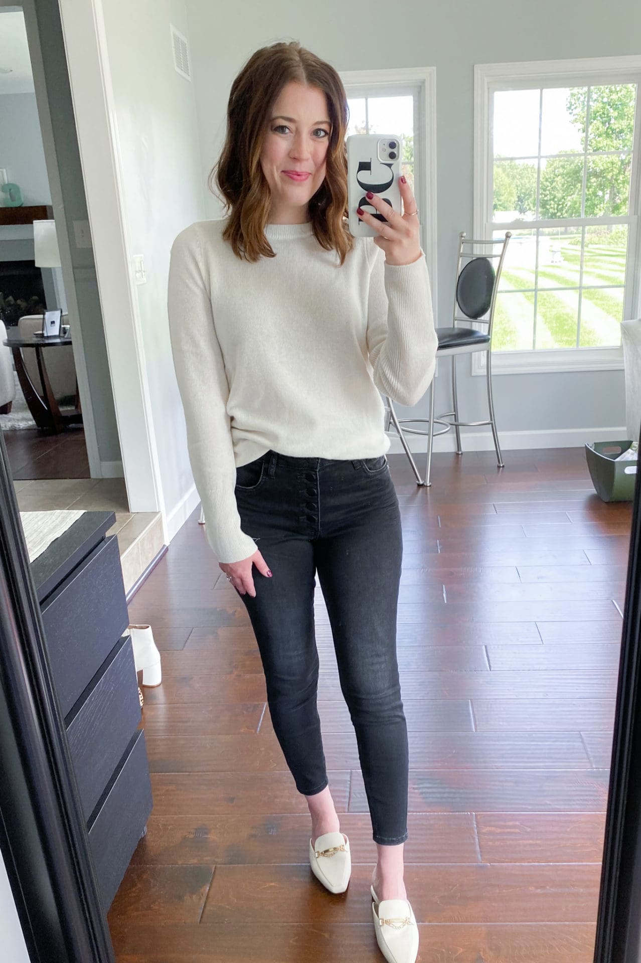 Cashmere Sweater [TTS] // Black Jeans [Size Down if in Between] // Ivory Mules [TTS]