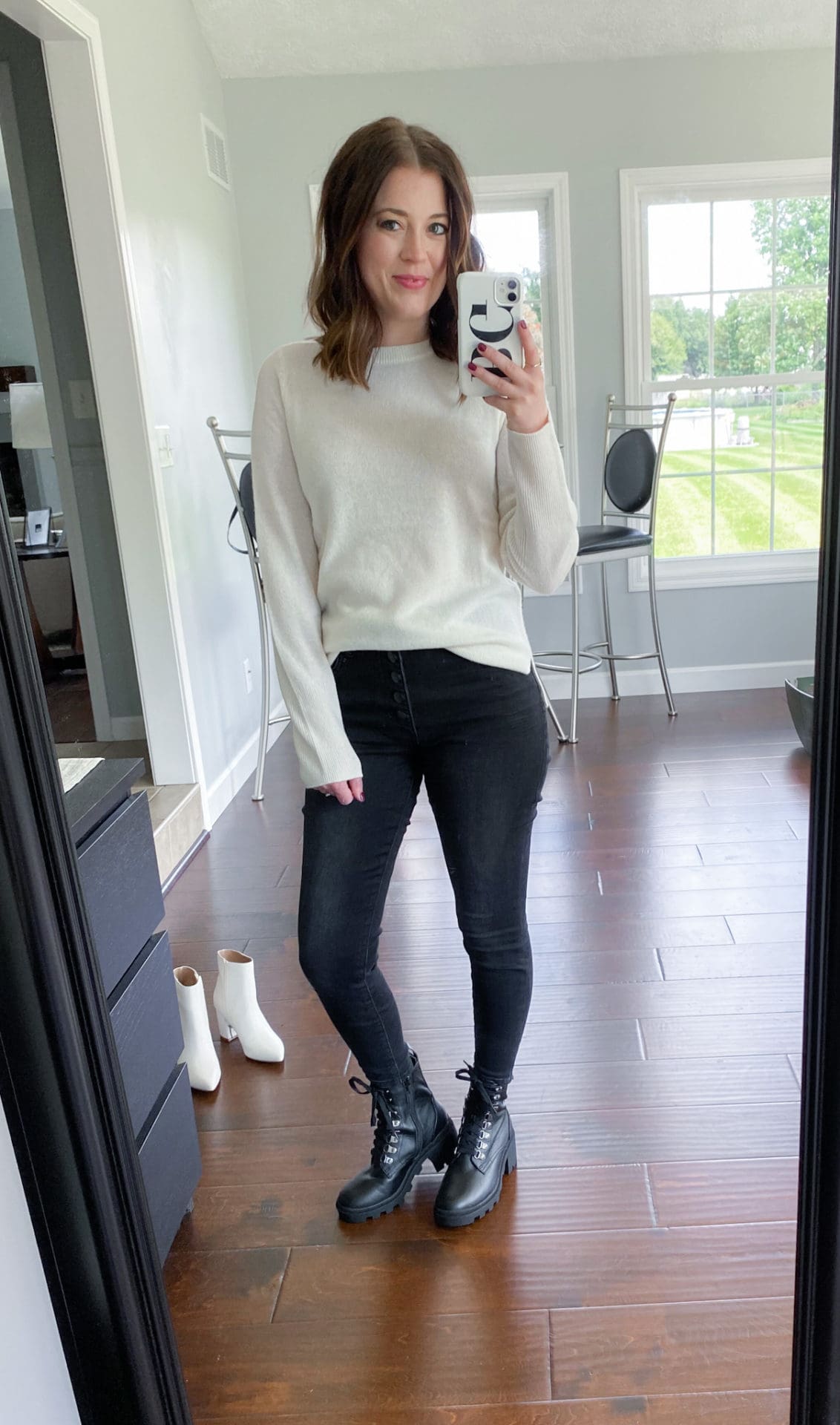 Cashmere Sweater [TTS] // Black Jeans [Size Down if in Between] // Block Heel Lace Up Boot [TTS]