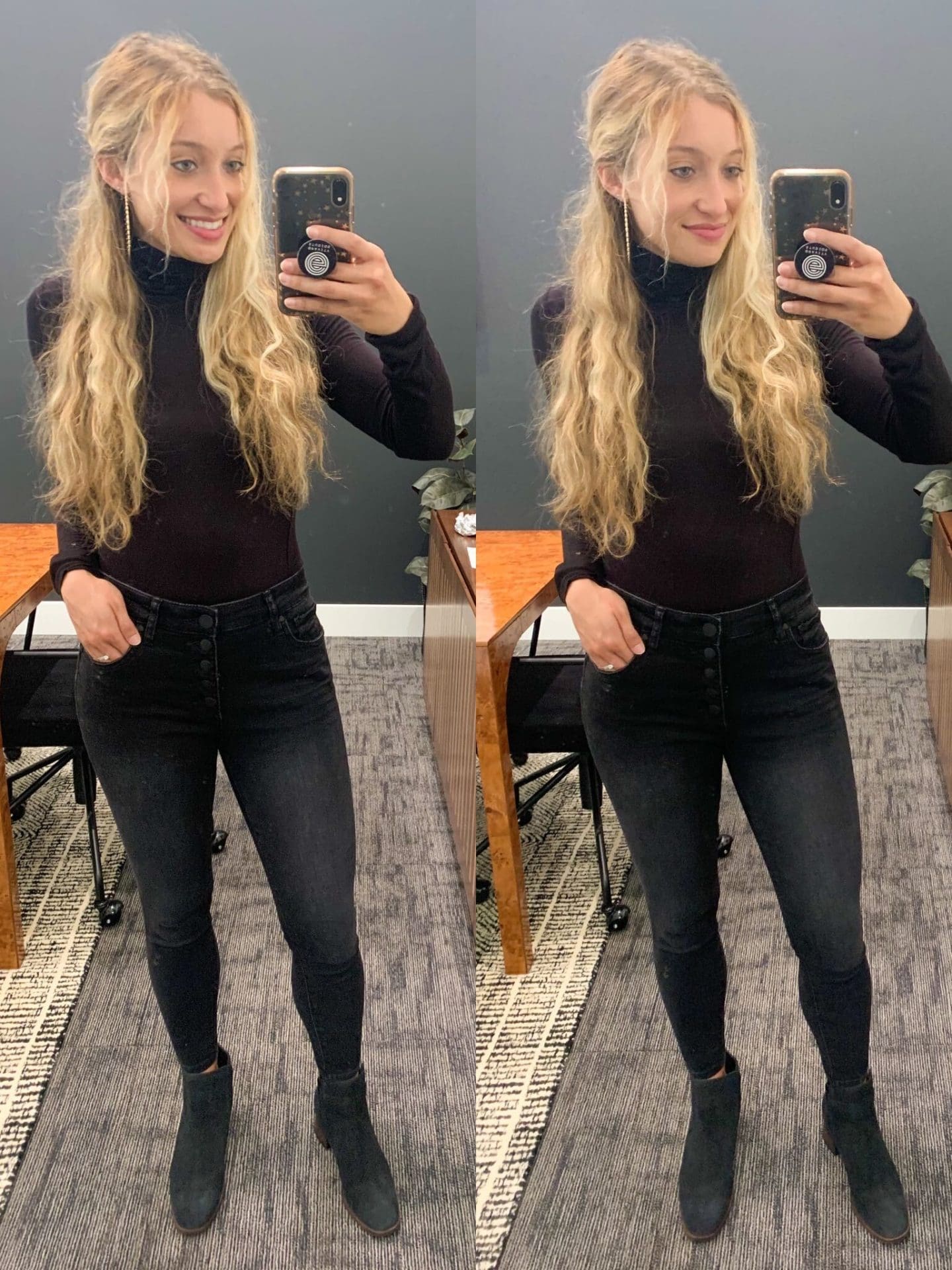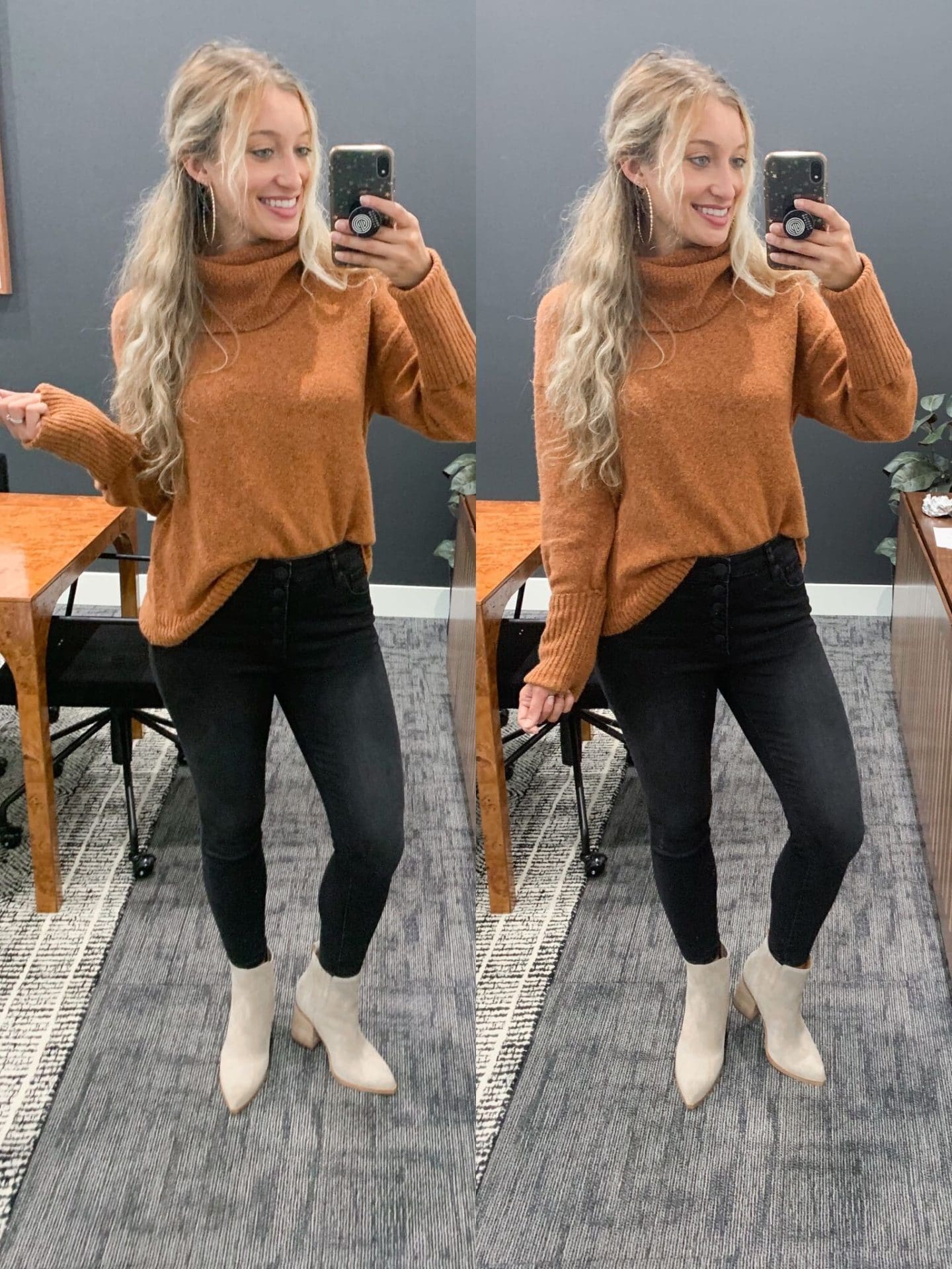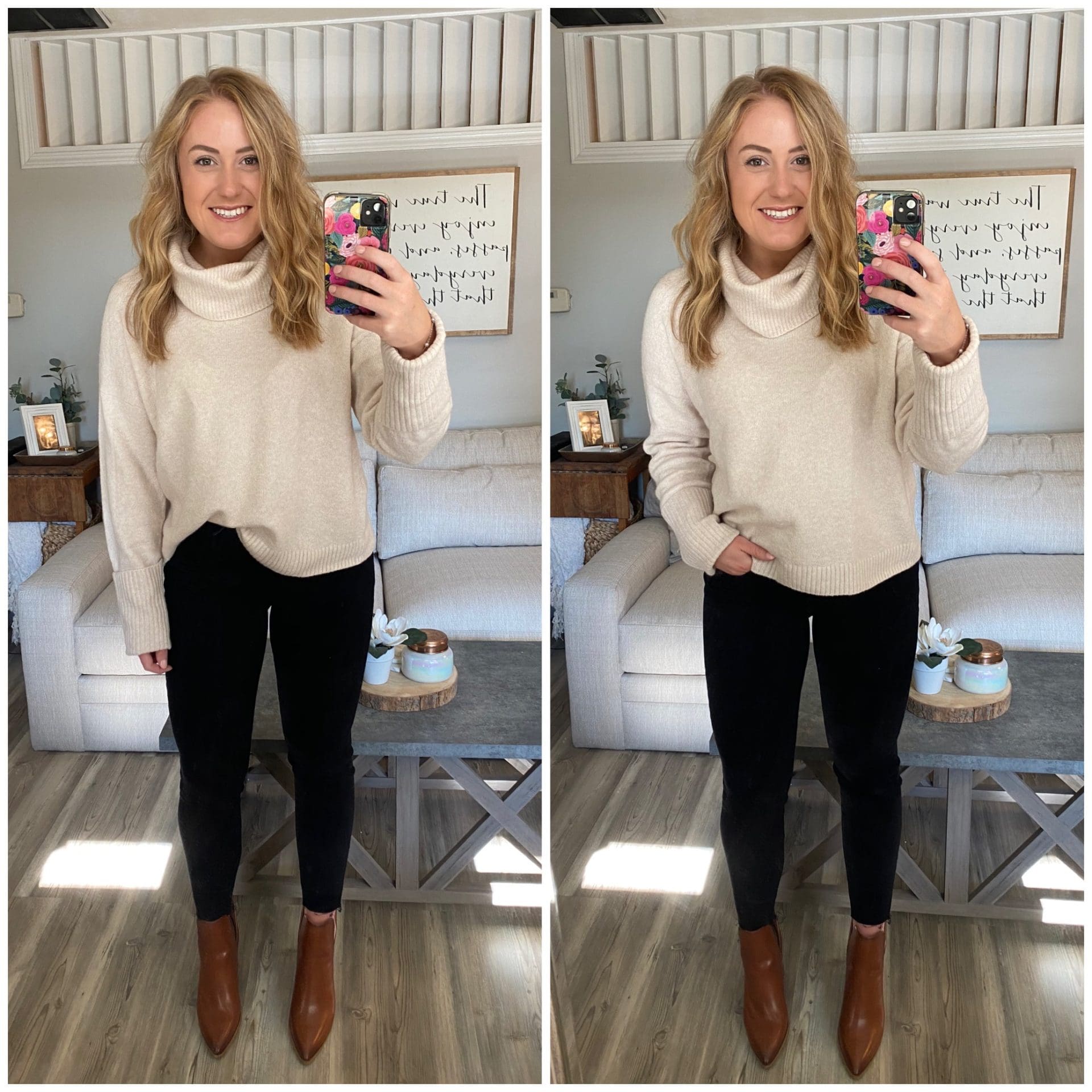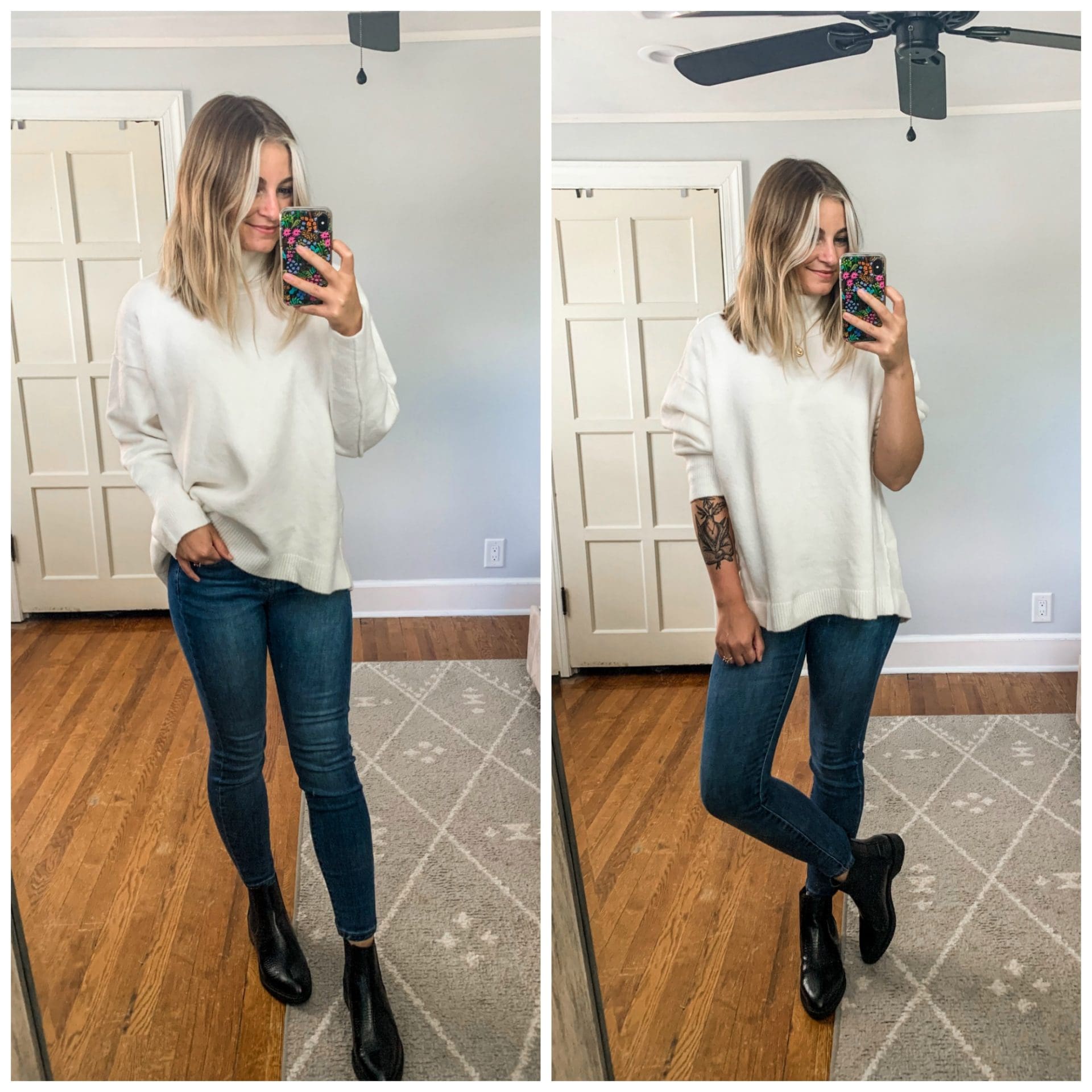 Turtleneck Sweater [size down if in between, wearing medium] // Black Denim [size down, wearing 6] // Booties [size up .5]