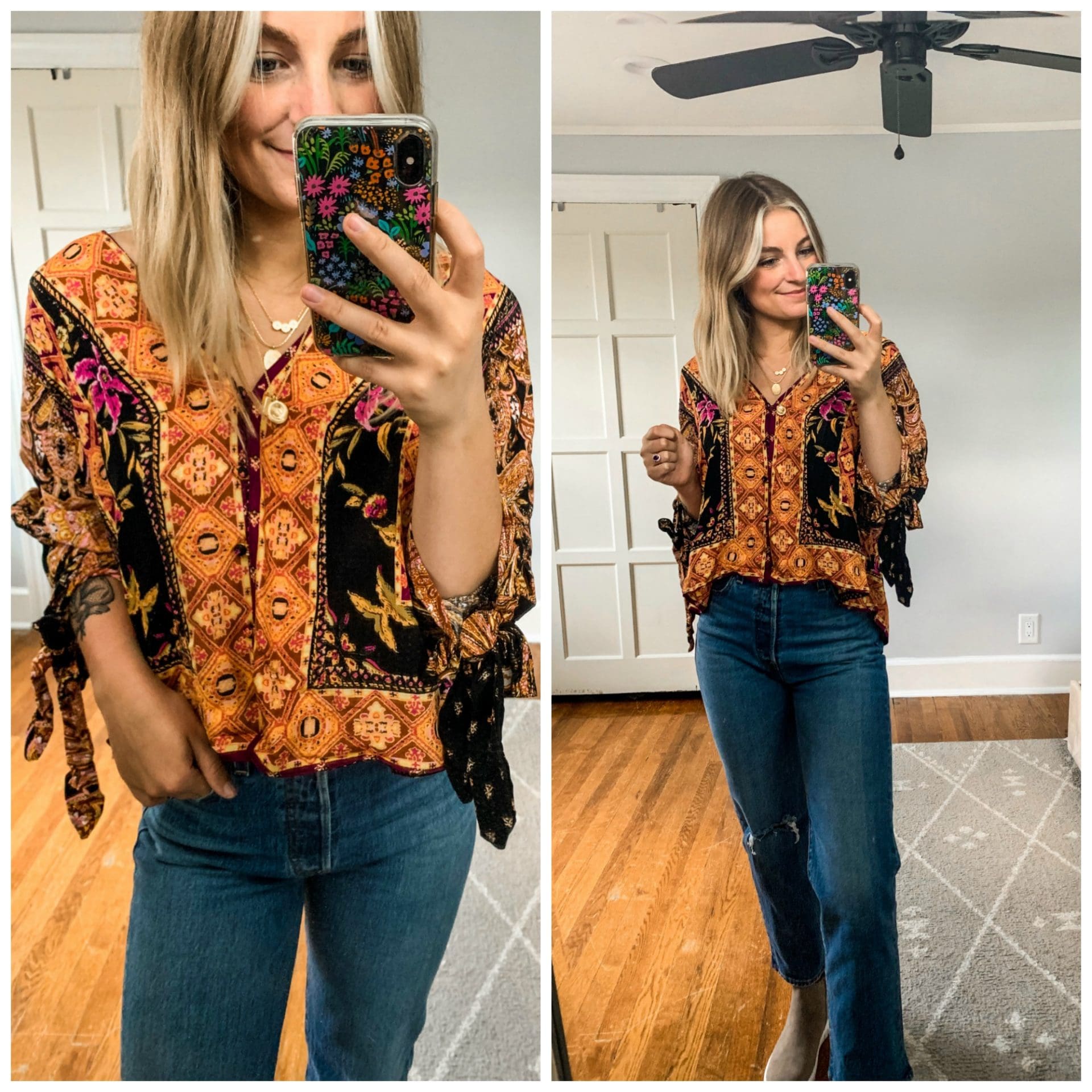 Free People Blouse [TTS, wearing size XS] // Levi Cropped Flare Jeans [Size down if in between]