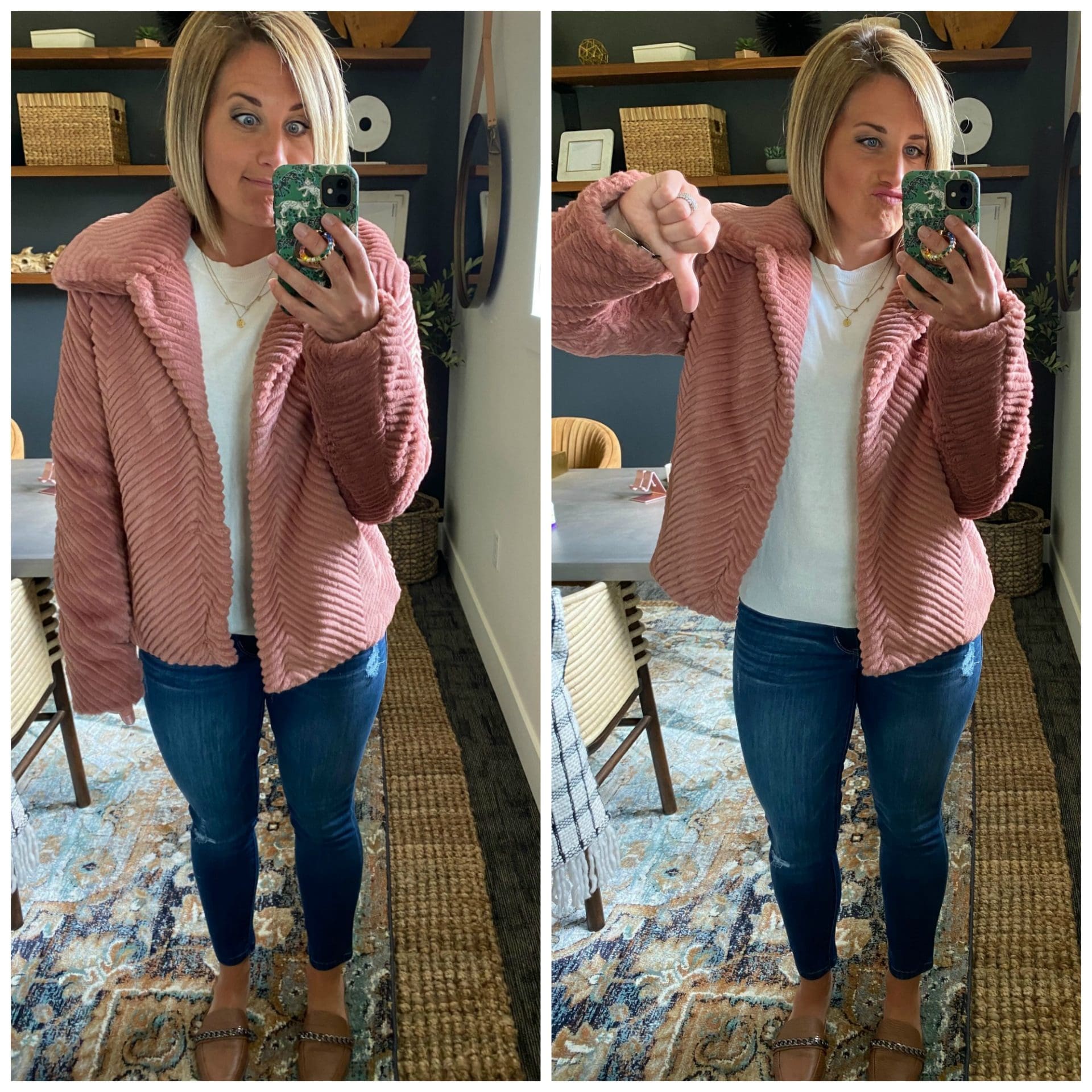 THE jacket of the sale! OH my do I love this jacket! It’s the perfect mix of edgy and chic and crazy comfortable on! I think everyone that saw it agreed that this one was GOOD! It’s the perfect statement piece for your basic outfit and I love that it has working pockets!