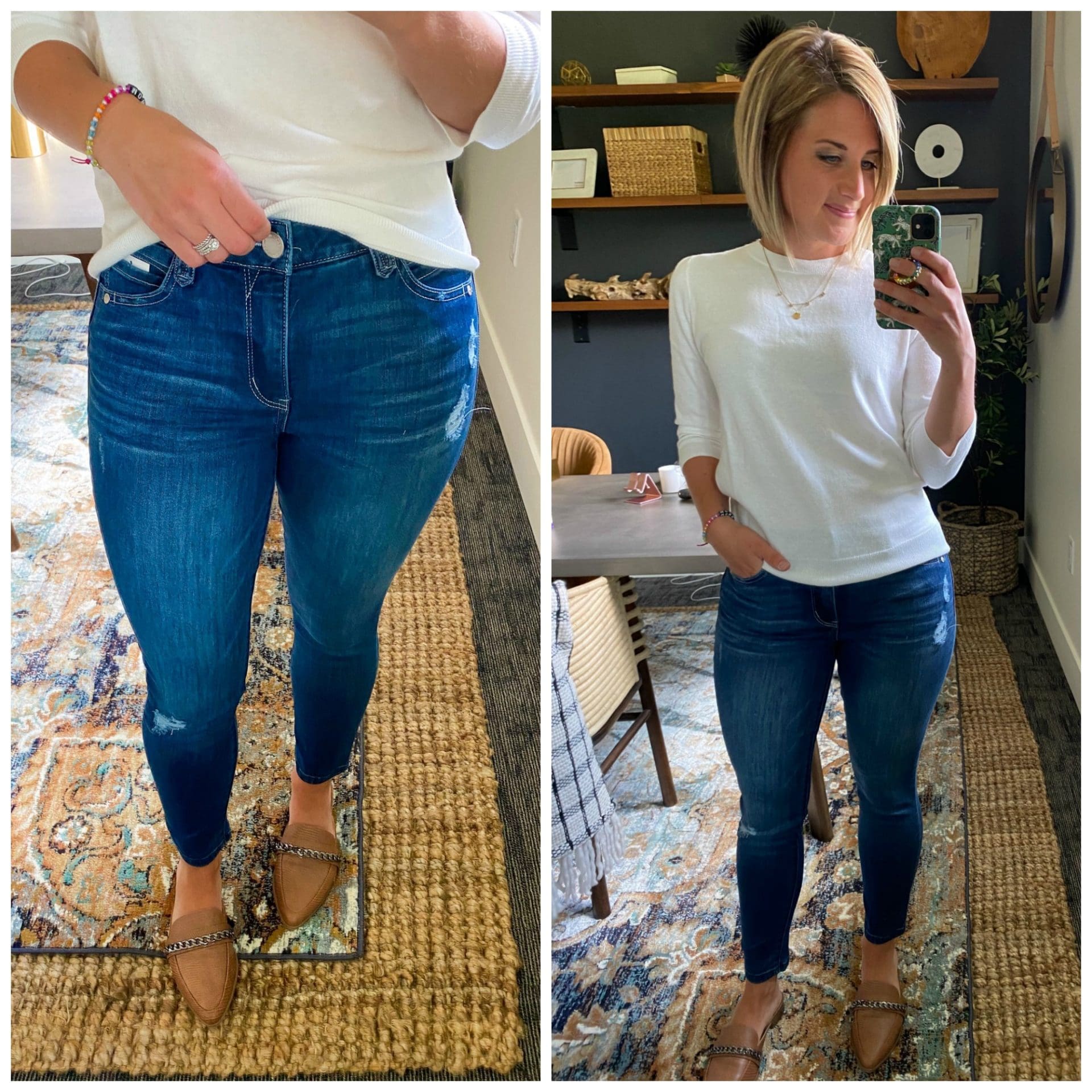 Wit & Wisdom Ab-solution Distressed High Waist Ankle Skinny Jeans [Size down one] // Sweater [size down one] // Mules [TTS]