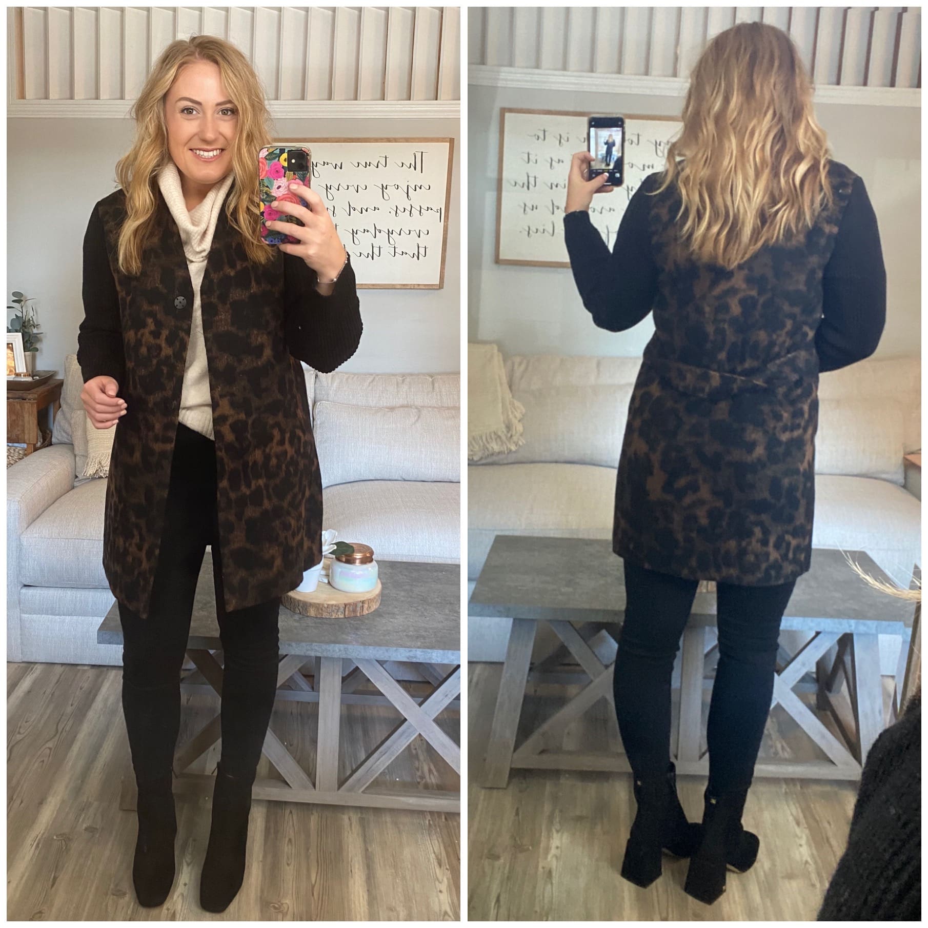 I knew I “had” to have this coat the moment I laid eyes on it! I can’t stop, won’t stop repping the animal print anytime soon. It is roomy, so size down! Typically a medium, wearing a small here.