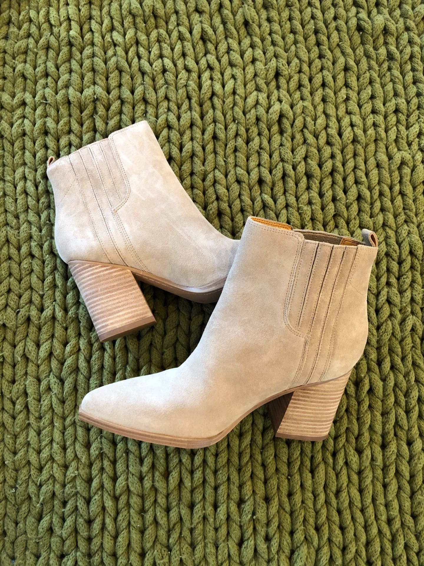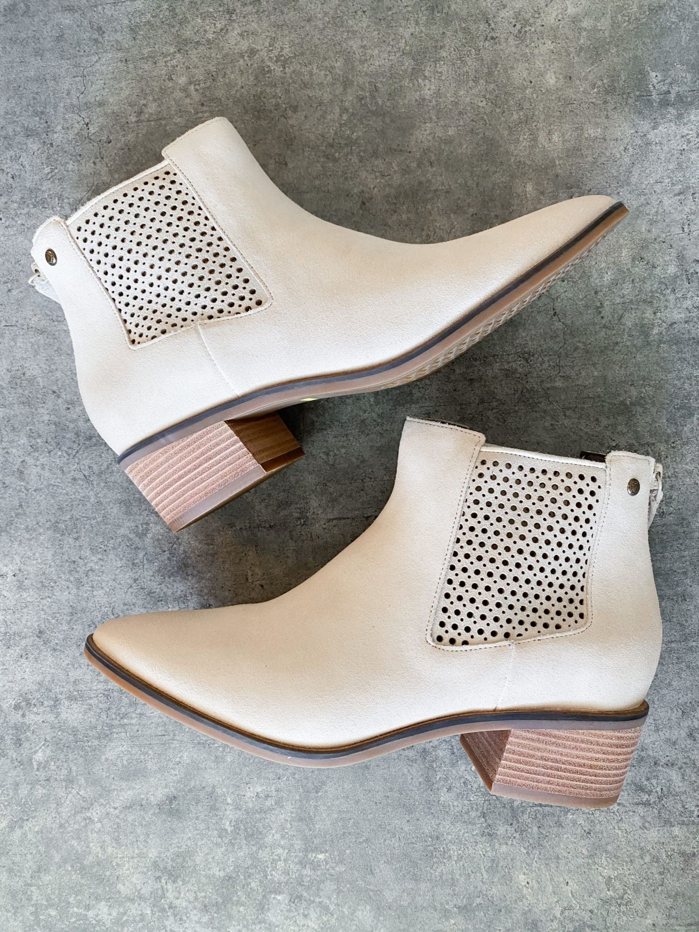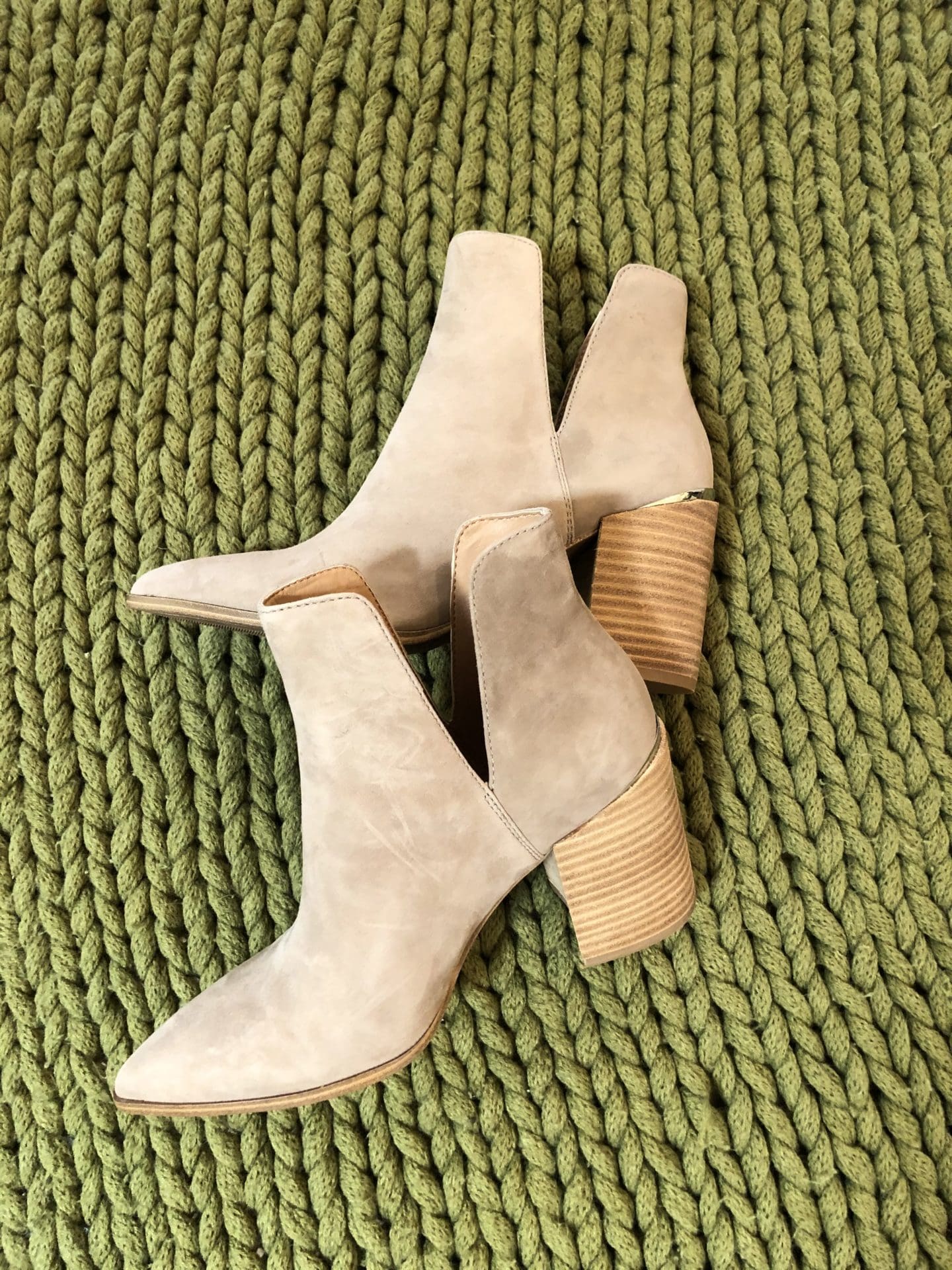 I REALLY wanted to love these booties but for the price and the way they fit they were a no go… The toe of the booties was awkwardly shaped and I just didn’t love the heel. If you were looking at these, I would suggest maybe finding another option!