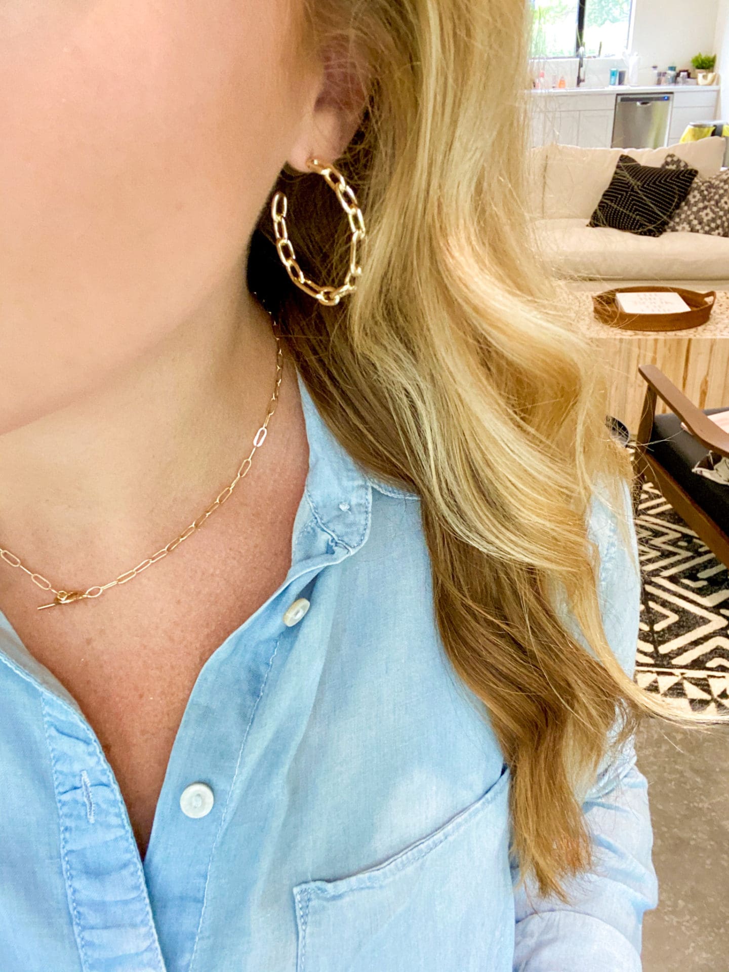 If you’re into the chain-link jewelry trend this season, add these little guys to your cart. Lightweight and such a fun play on classic hoops! Also available in silver.