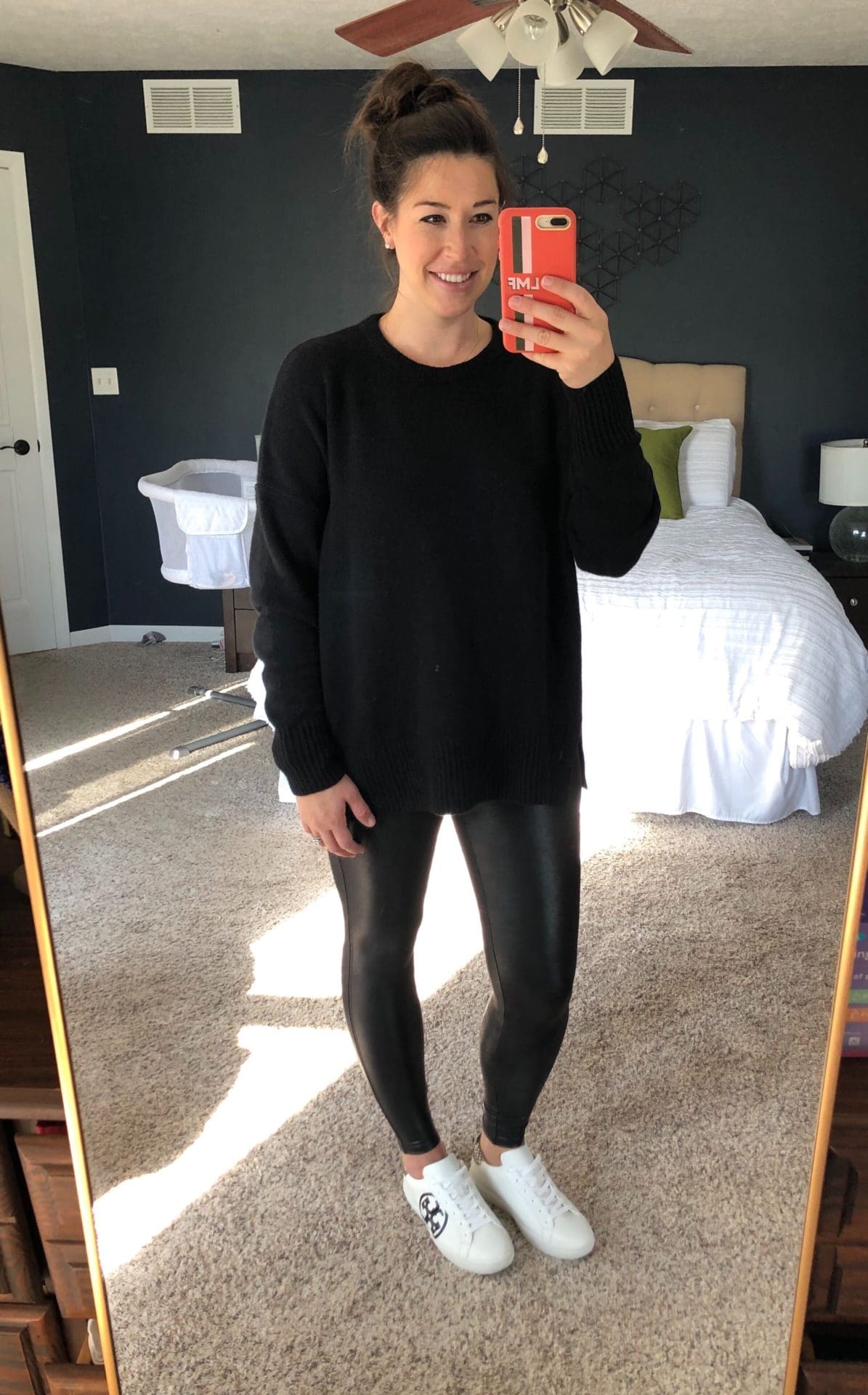 Black Sweater [TTS, wearing in M] // Leggings [size up, wearing in L] // Shoes [size up .5] // Earrings [obsessed!]