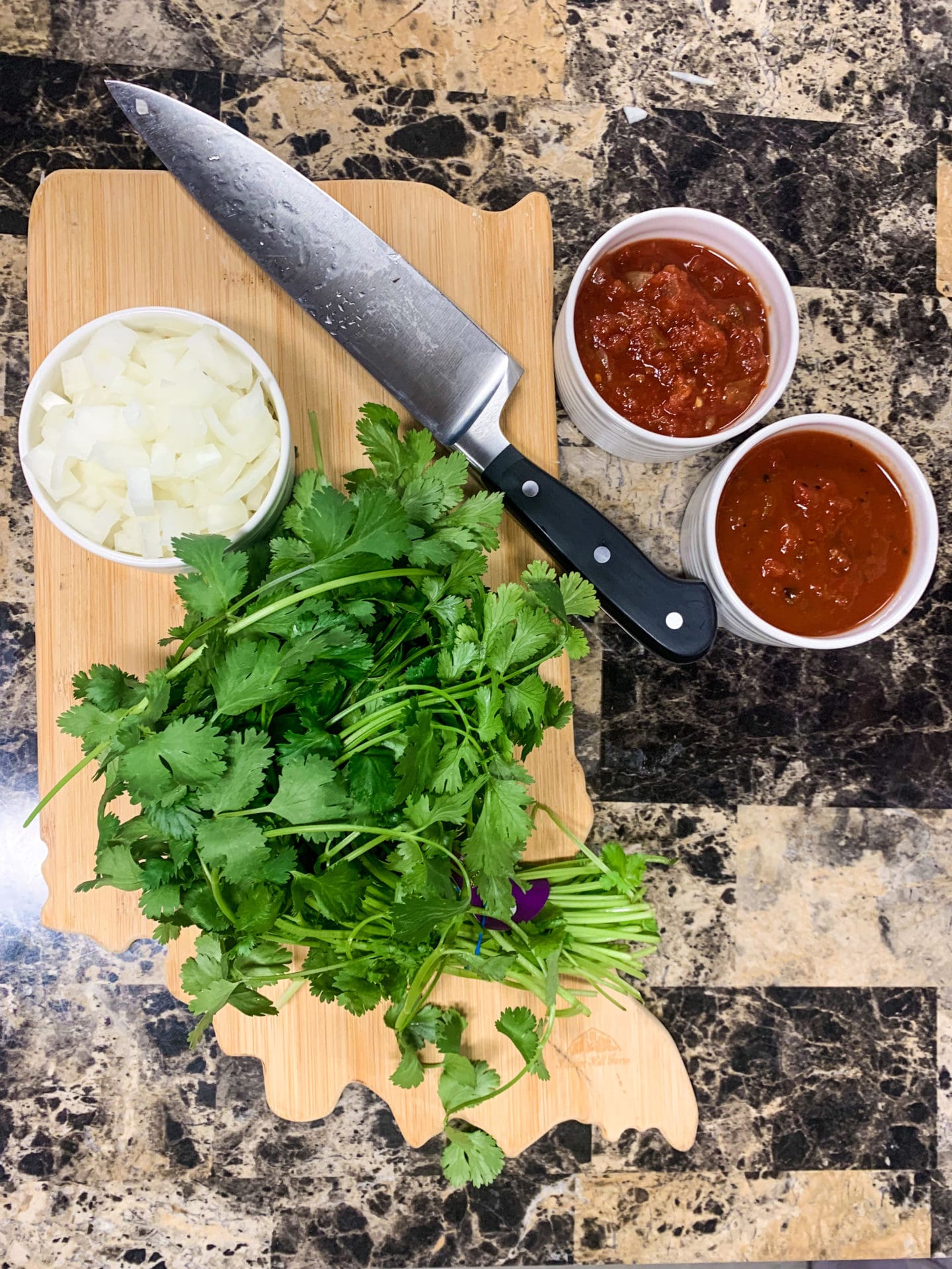 4. While the meat is cooking, chop up your onion and cilantro.