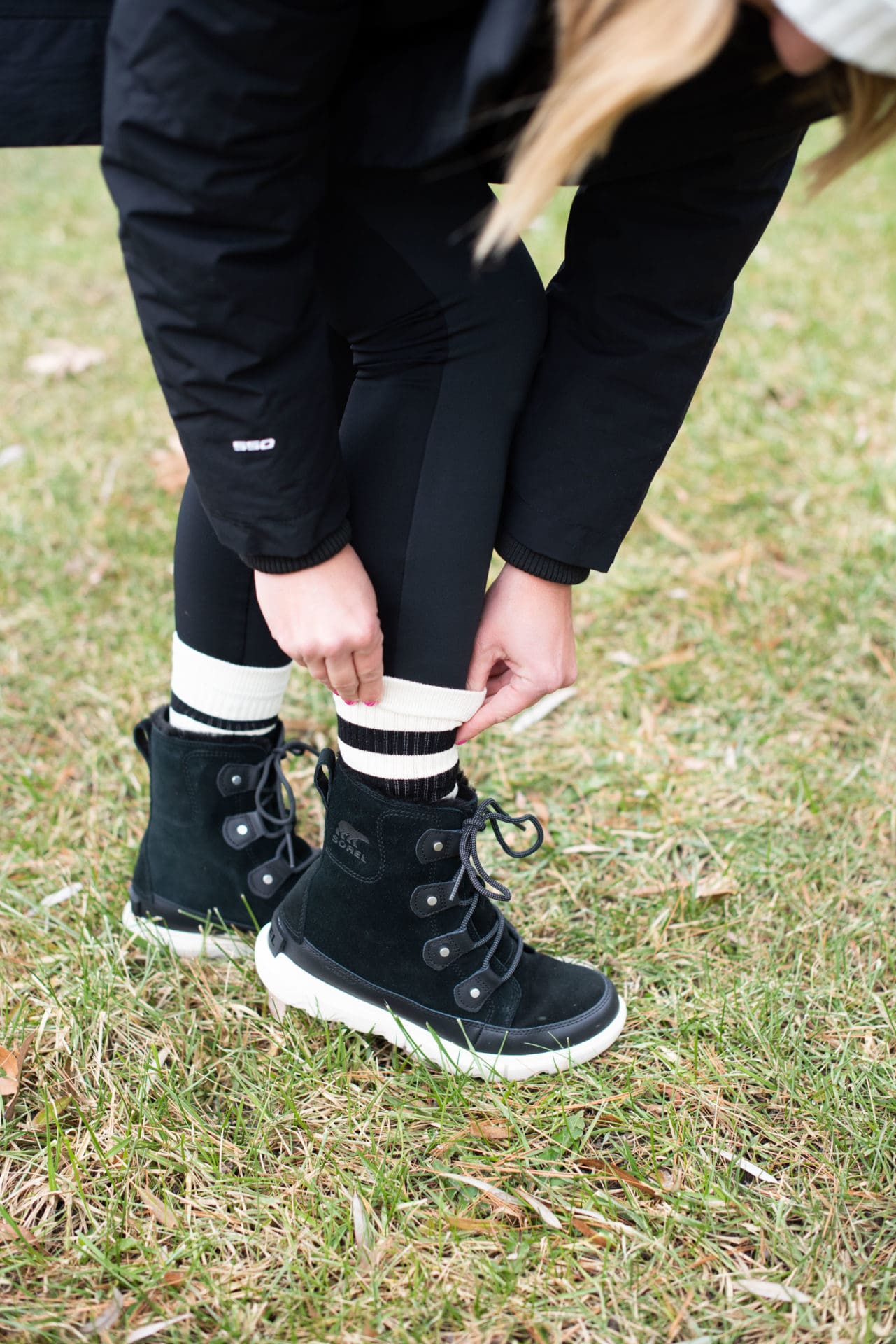 Backcountry Frary Fleece Tight [true to size, wearing small] // Stance Gauge Sock – 3-Pack [similar] // Sorel Explorer II Joan Faux Fur Boot [true to size]
