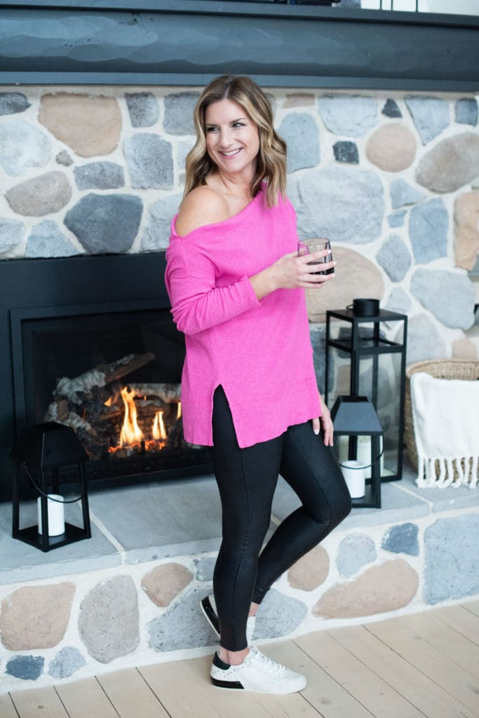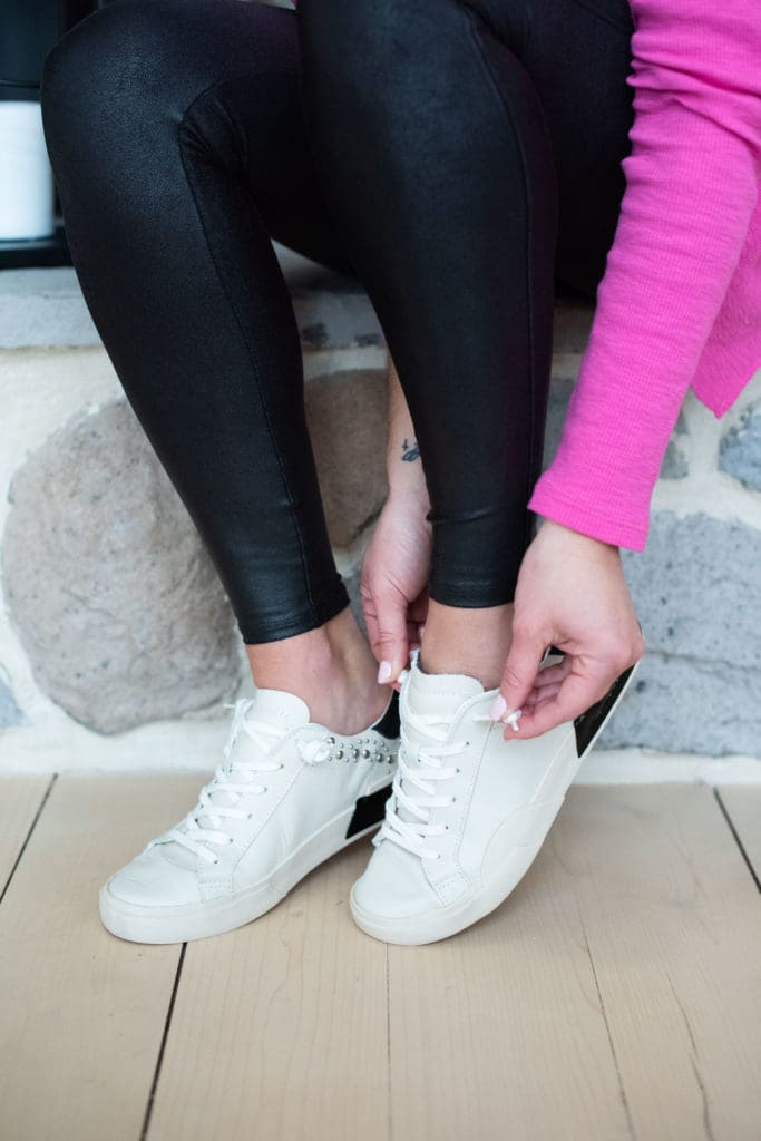 Get Together Long Sleeve Top • Free People [true to size, wearing in small] // Faux Leather Leggings [size up if in between, wearing in small] // Zina Studded Sneaker • Dolce Vita [true to size]