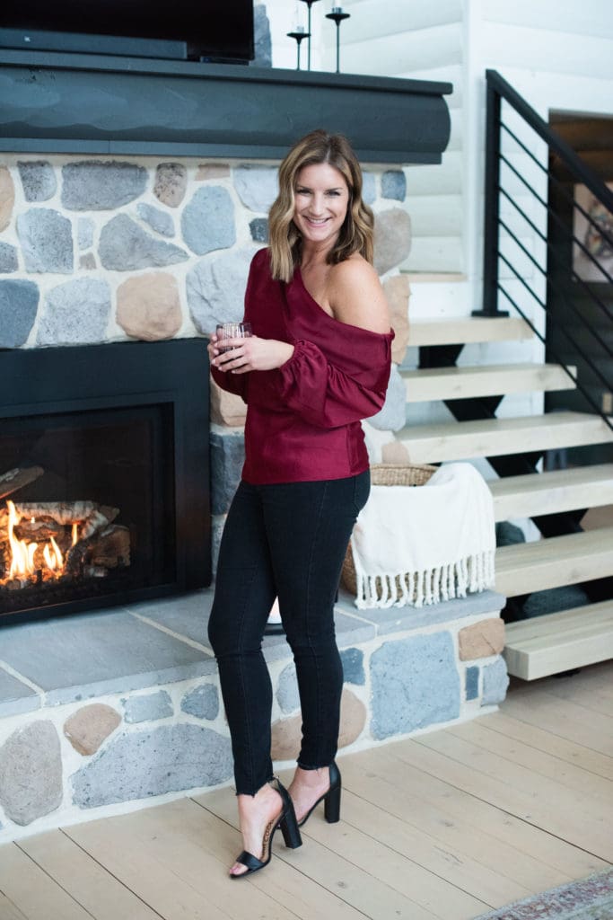 Should Shawn and I decide to go out to dinner [we’ve been known to frequent Chick-fil-A for a big V-Day night out in the past, but hey, new year, new us] a sexy off-the-shoulder top and a trusty pair of black denim it is! I love that this look gives off a vibe while maintaining a little mystery. I also appreciate that the color matches exactly what is in my cup, I’ll cheers to that!