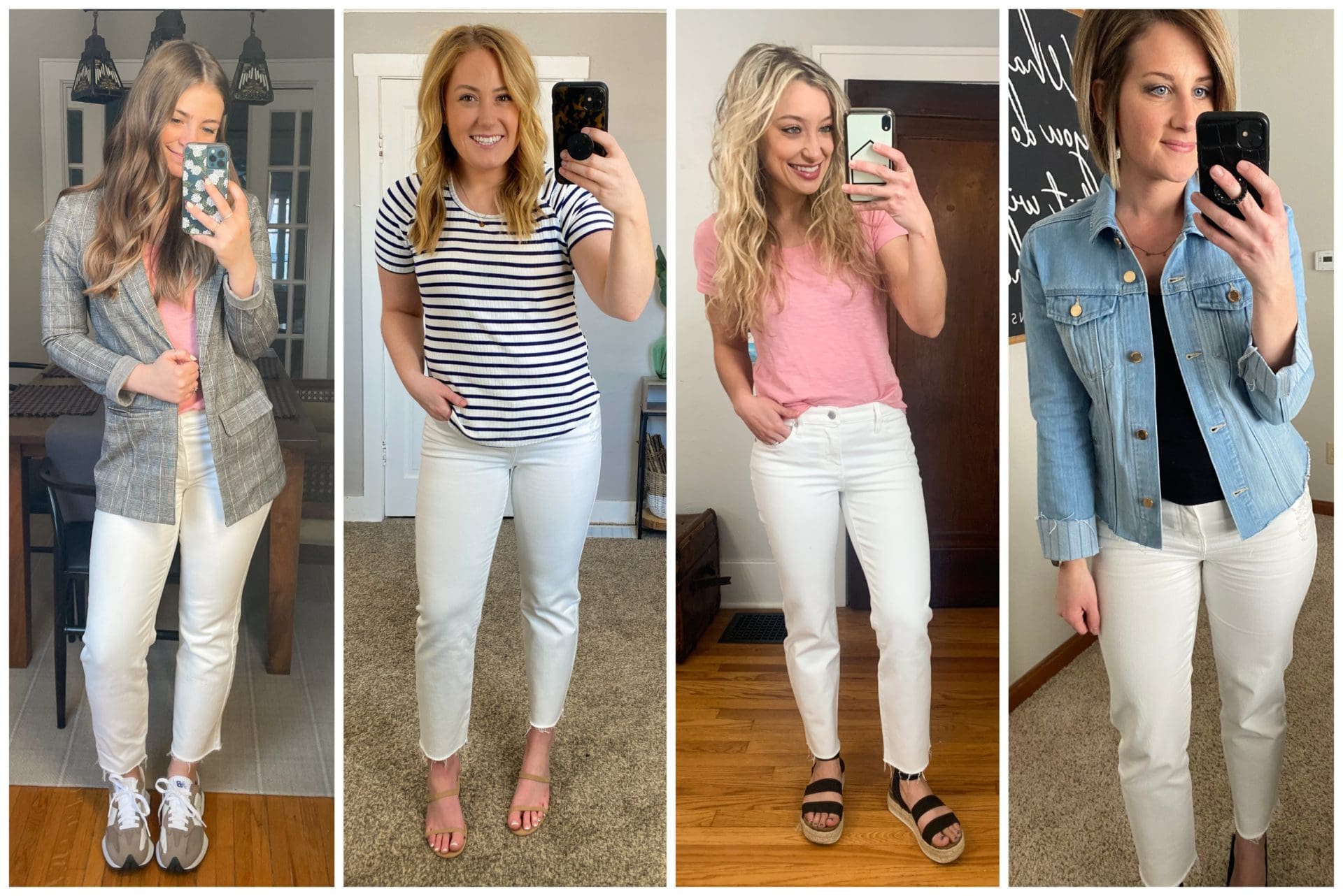 Fit Tip: White Denim [true to size, shown in sizes 0, 6, 0, 2]