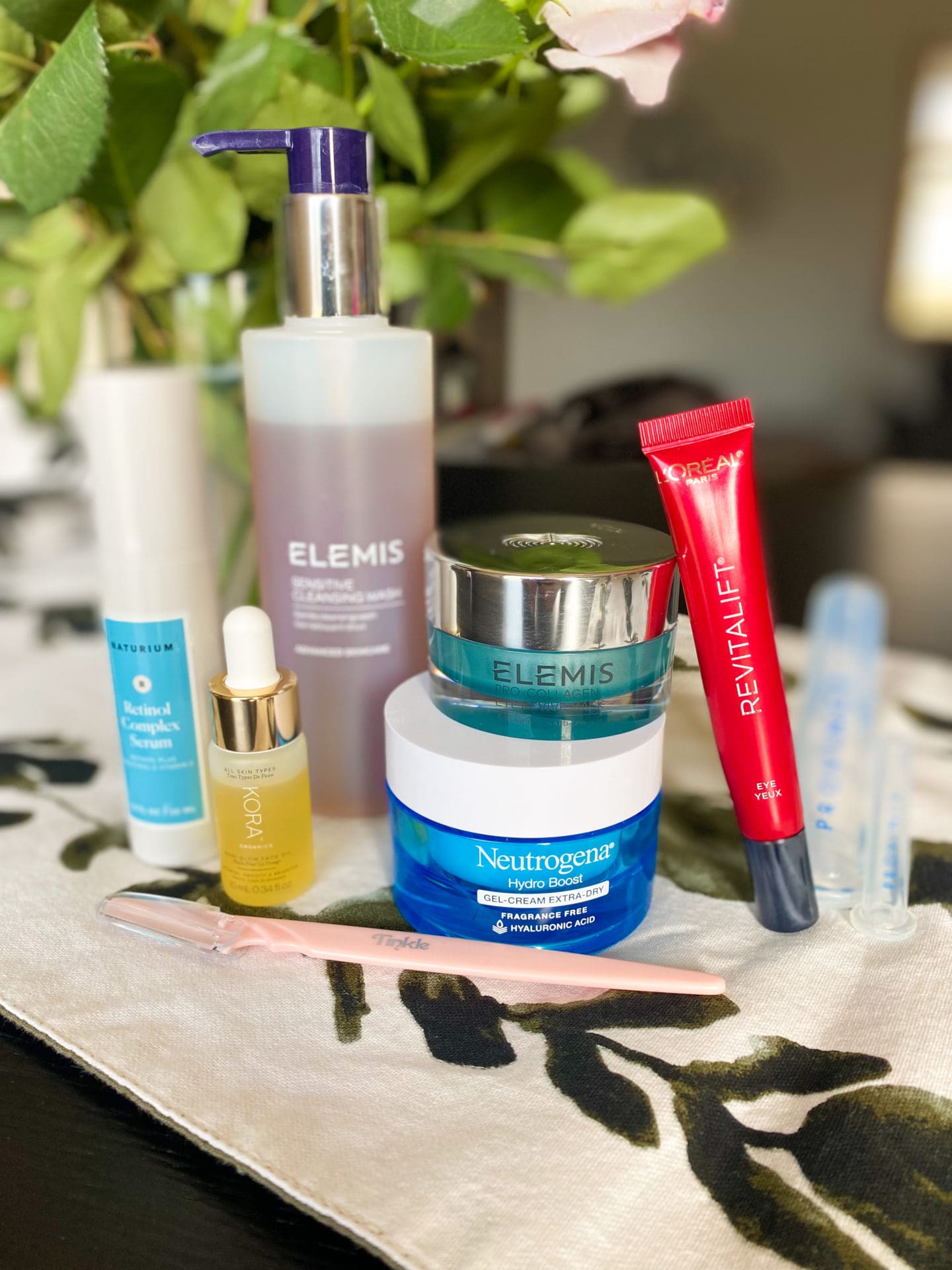 I’m embarrassed to even say this, but up until 6 months ago my skincare routine consisted of Cetaphil for face wash and a very light moisturizer because I was afraid anything moisturizing would make me break out….. YIKES. I was, however, consistently washing my face twice a day so that was a bonus! But, let’s just say I’ve come a long way [lol] in the last several months. After noticing my skin was taking a hit from drying it out and not properly taking care of it, I took matters into my own hands! I would say my skin is more combination; oily in my “T” zone and a little more dry everywhere else! I started using Elemis products by introducing a gentle cleanser and eye mask and things escalated from there 😉 Now I have a whole new morning and nighttime routine that I enjoy doing and doesn’t feel like a chore! Here’s my typical routine: