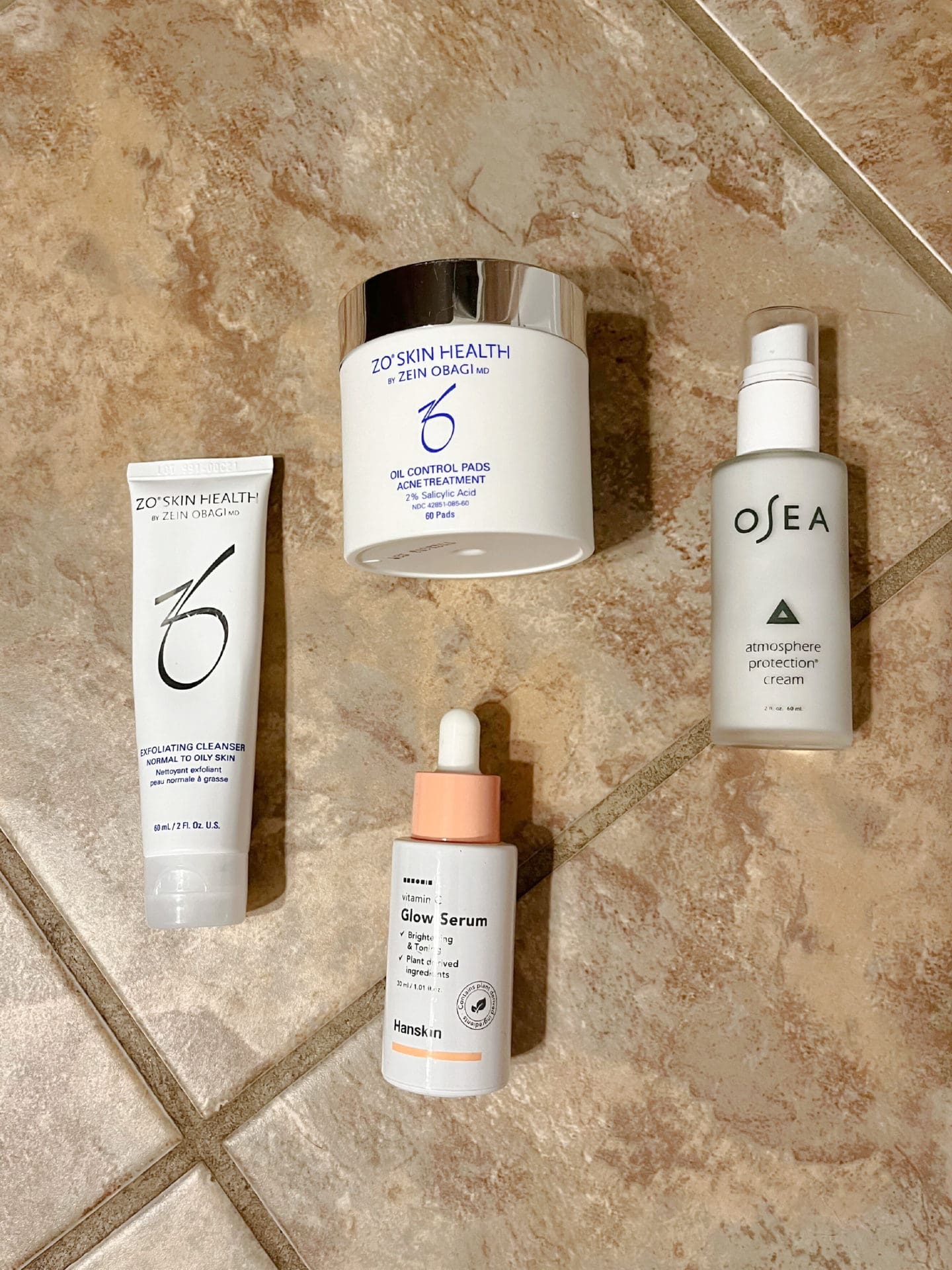 Morning Routine: ZO Exfoliating Cleanser // ZO Oil Control Pads (cut in half; swipe face) // Osea Atmosphere Protection Cream // Hanskin Vitamin C Glow Serum