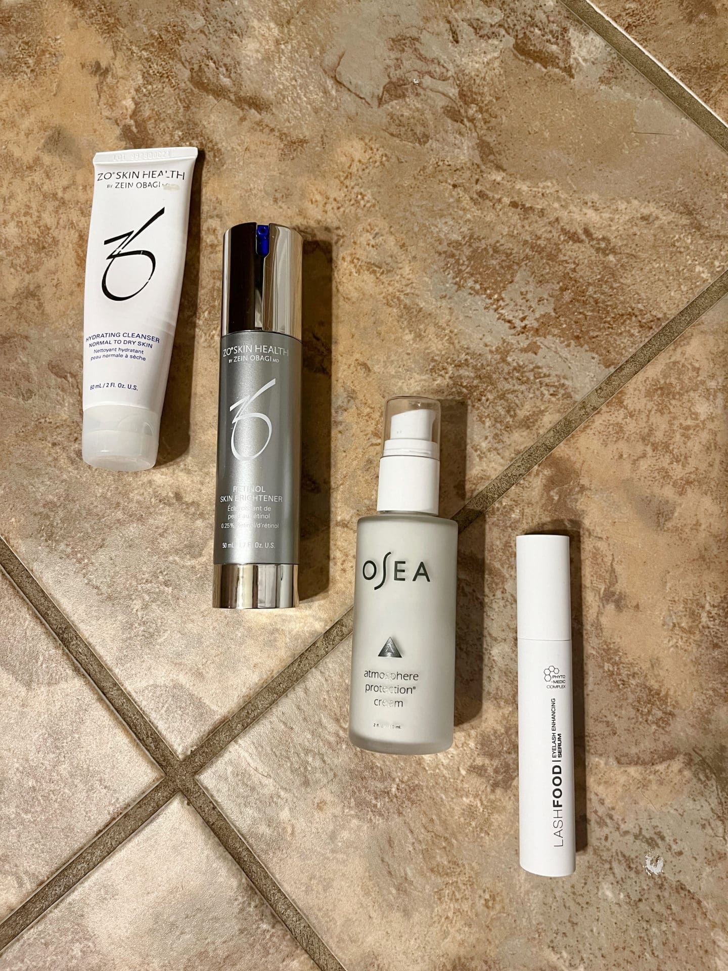 Evening Routine: ZO Hydrating Cleanser // ZO Calming Toner (I put this in a small travel spray bottle rather than use a cotton pad) // Osea Atmosphere Protection Cream // ZO Brightening Retinol // LashFood Lash Enhancing Serum