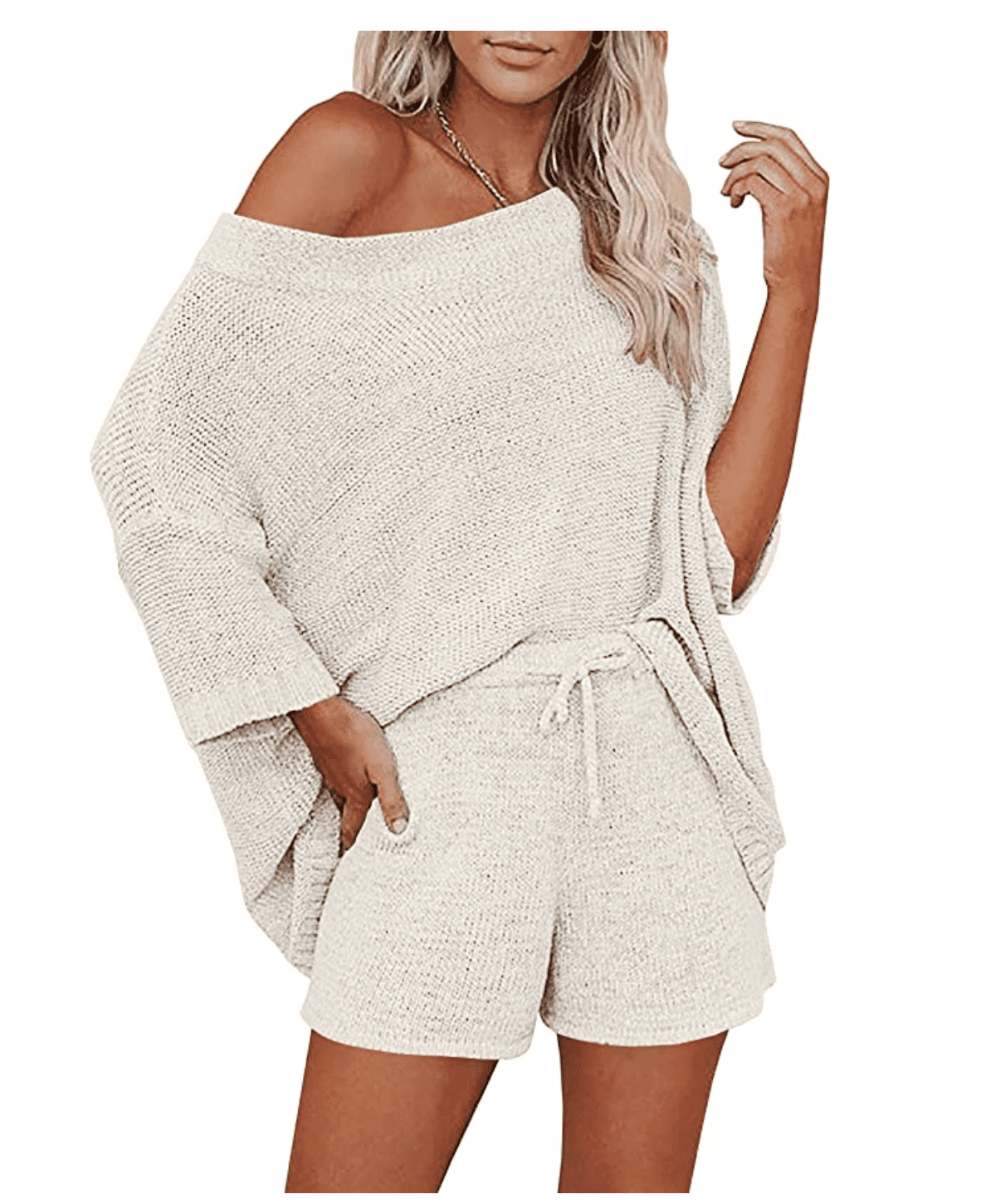 Mafulus Women’s 2 Piece Outfits Sweater Set Off Shoulder Knit Top + Drawstring Waist Short