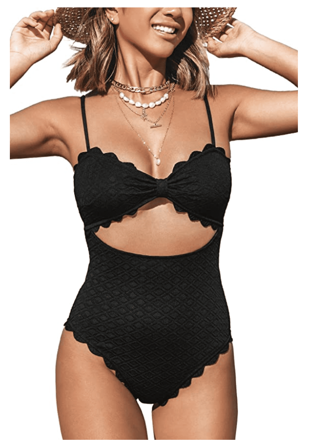 CUPSHE Women’s One Piece Swimsuit Sexy Black Cutout Scallop Trim Bathing Suit