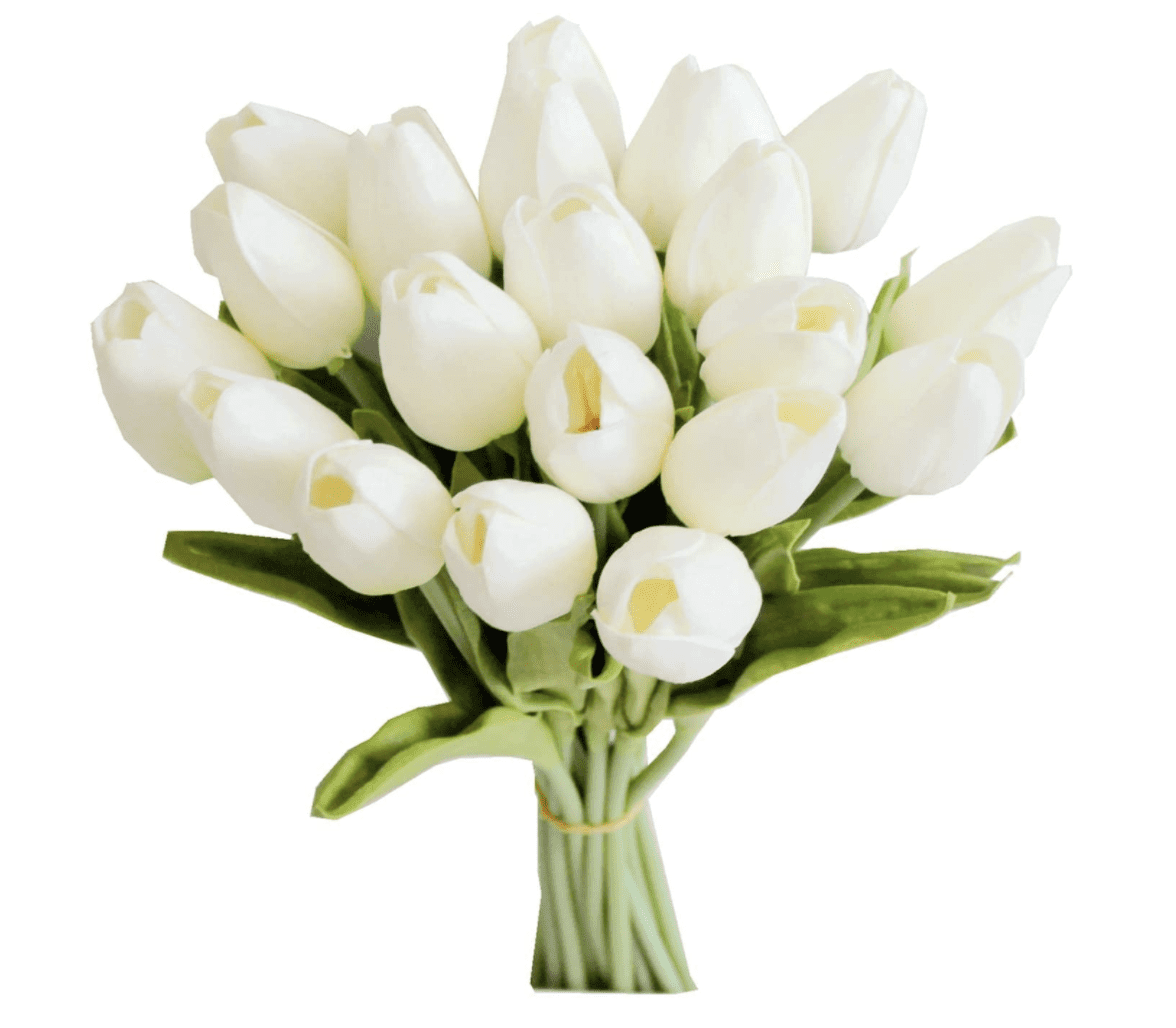 Mandy’s 20pcs White Flowers Artificial Tulip Silk Flowers 13.5″