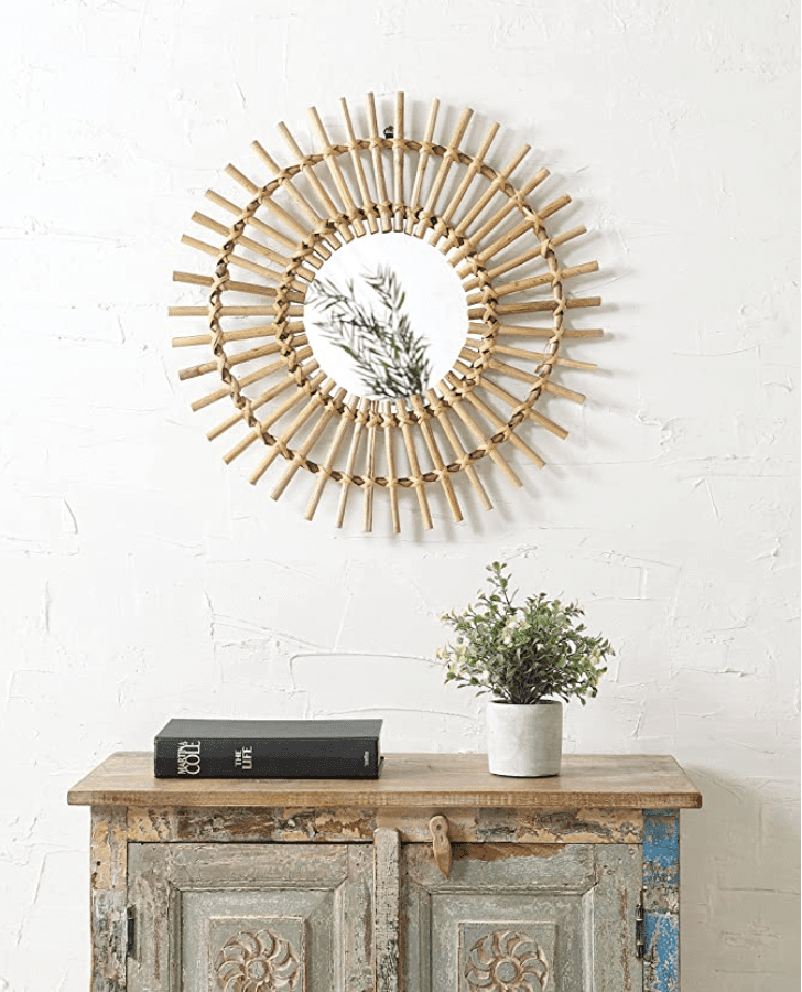 Madhu International Sunburst Bohemian Rattan Mirror Rustic Natural Rattan Round Wall Mirror