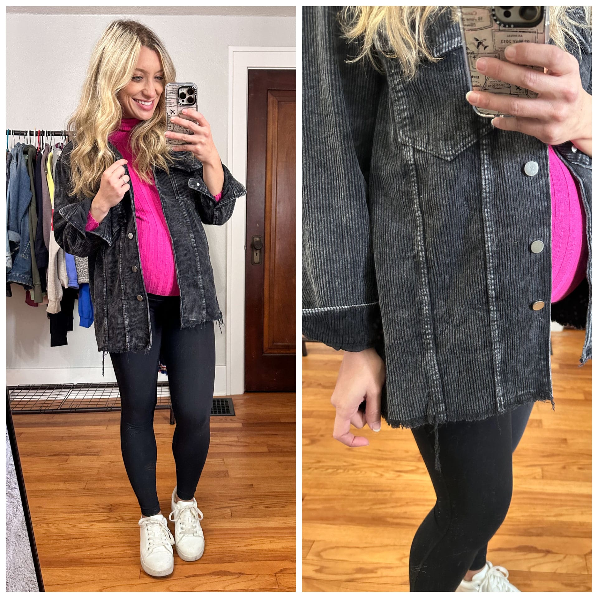 Shacket [true to size] // Sweater [true to size] // Maternity Leggings [true to size] // Sneakers [size down .5]