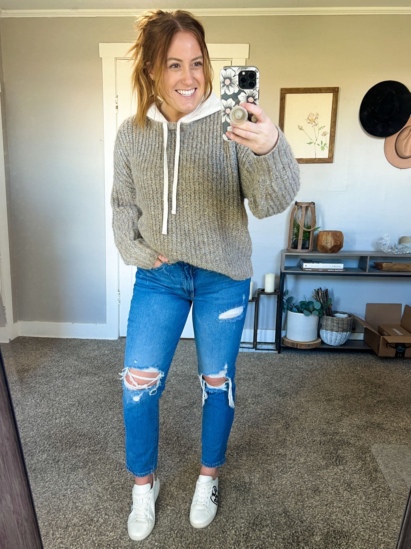 Sweater [size down if in between, wearing medium and it’s oversized!] // Jeans [TTS, wearing size 8] // Similar Sneakers