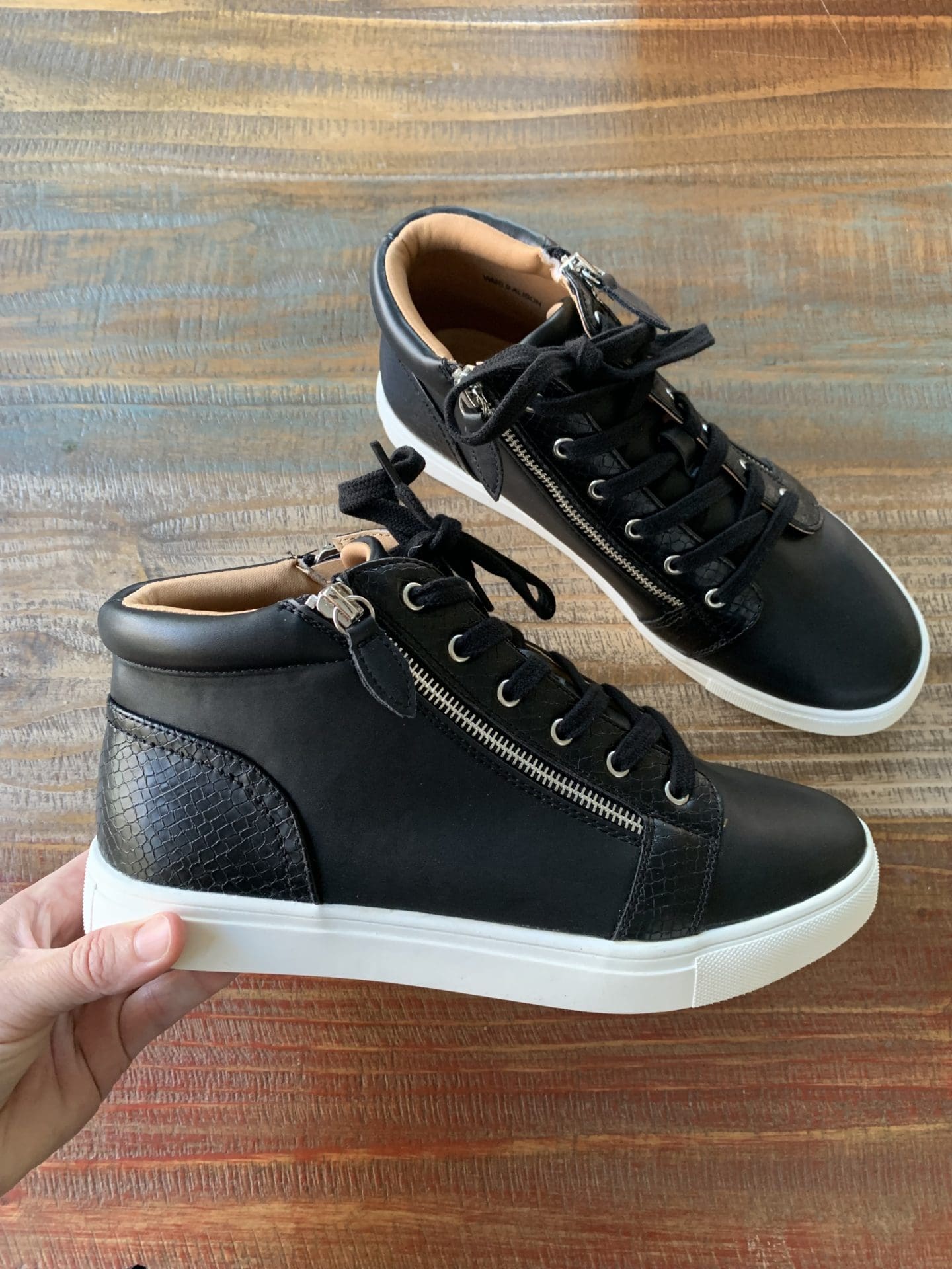 DV Dolce Vita Women’s Alison High Top Shoe [color Black Multi, true to size]