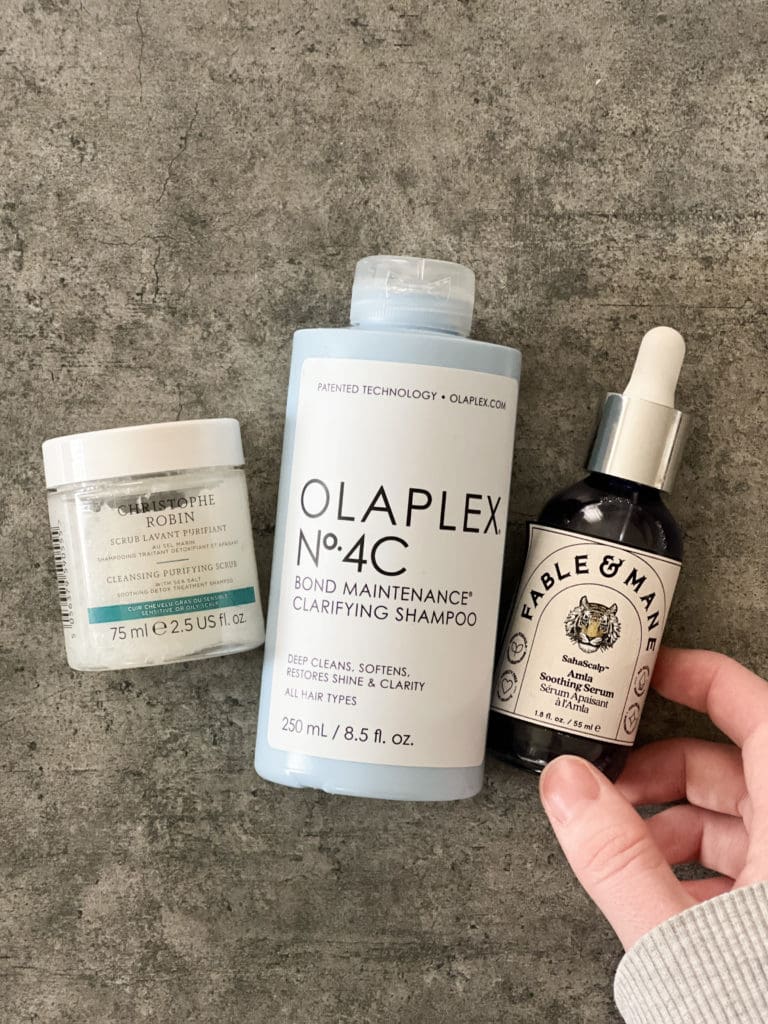 This one’s for my fellow dry, flaky, scalp ladies – it happens to the best of us! 😉 Good news. We just hit publish on a blog post reviewing some of the top scalp care products [you can read the post here!]! If you struggle with product buildup [likely caused by dry shampoo, texture sprays, hair sprays, etc.] a detox shampoo and scalp scrub have been LIFE CHANGING for me. I use the detox shampoo about every other wash, or once a week, followed by a soothing oil before bedtime! My scalp has never been happier!