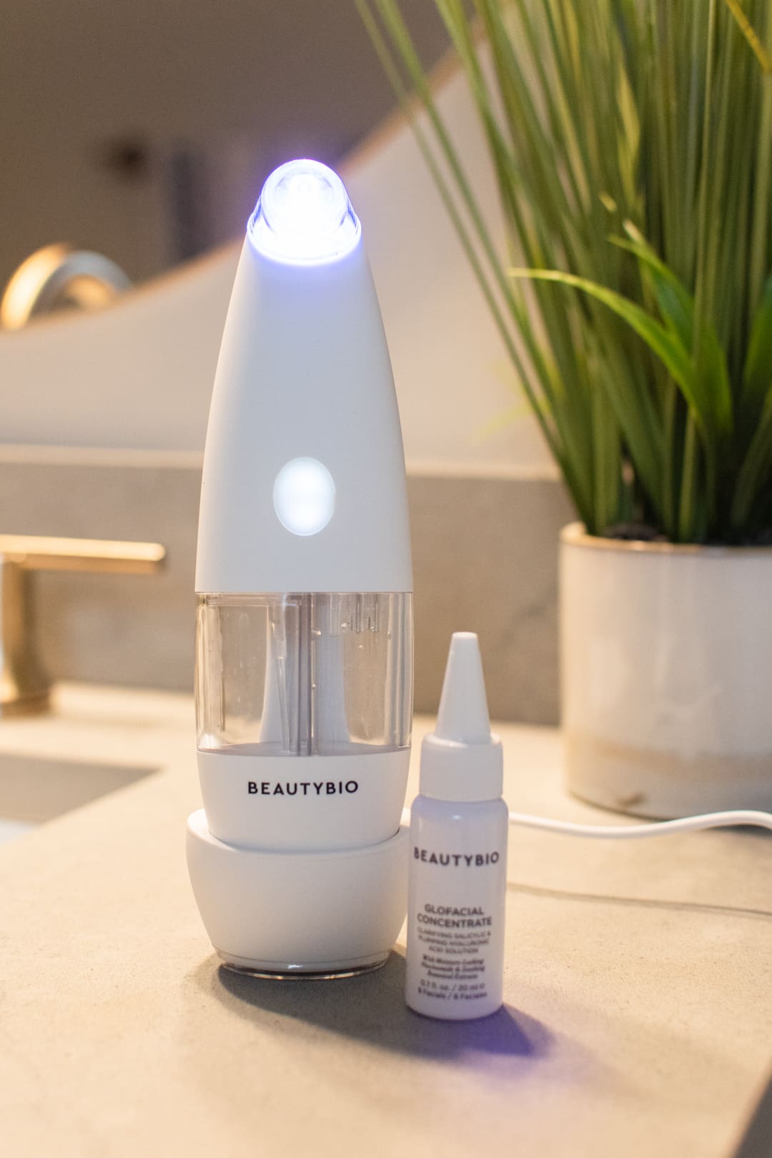 The folks from BeautyBio said it best: “Like a vortex vacuum for your pores, the GLOfacial pore cleansing tool gently pulls out dirt, oil, and makeup from pores helping them appear smaller while resurfacing texture & infusing skin with clarifying Salicylic and plumping Hyaluronic Acid.”