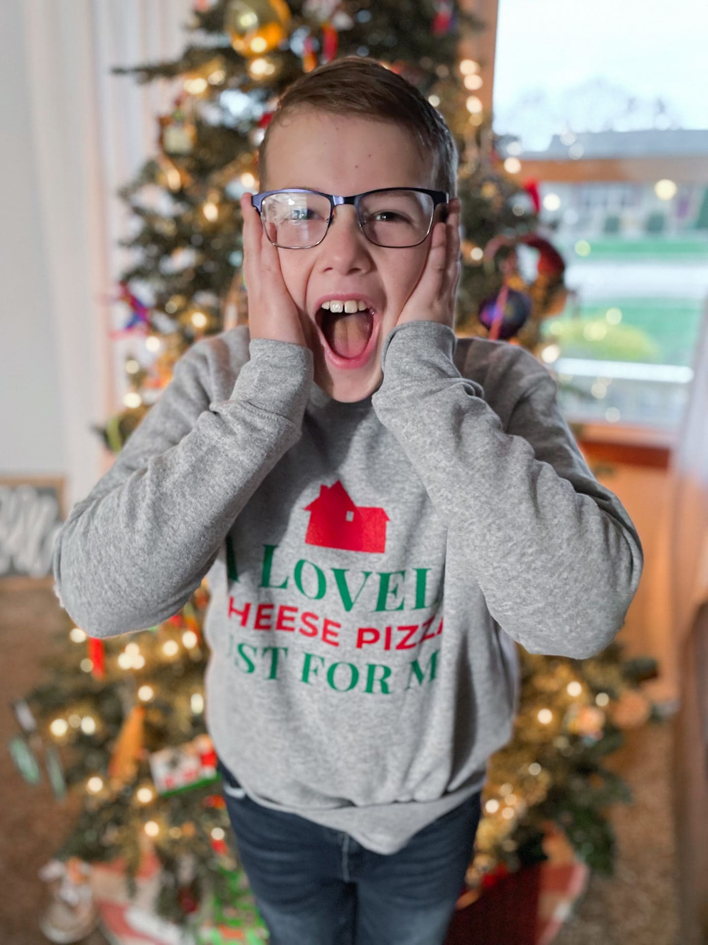 My son wore this sweater for Christmas and got so many compliments! It looks dressy but feels just like a sweatshirt – win win!