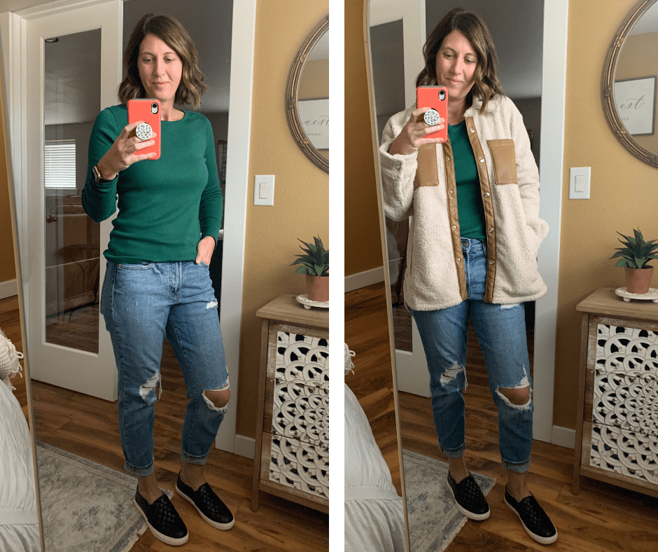 Jen’s Layering Long Sleeve & Sherpa Shirt Jacket