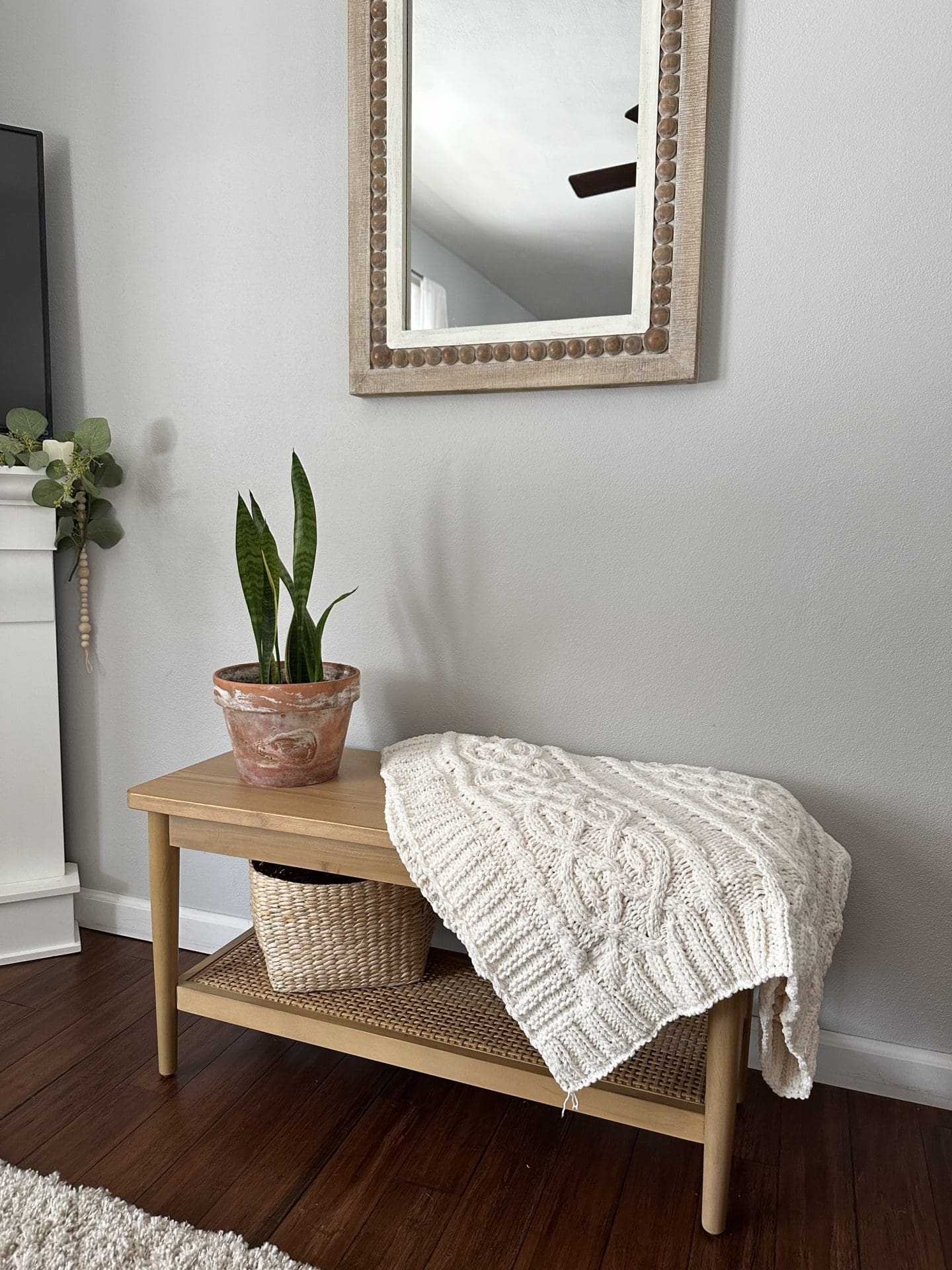 This little space needed some love! Think, dark dungeon before…. to Fresh Popping now! Everything I purchased was very budget friendly for this project, and the best part – I did it all on my own! Okay, the husband did get the drill down and showed me how to drill in the wall for the drywall screws, but I picked up the drill and did the other hole – so basically I’m calling this project all mine! 🙂 I love how it turned out as it will greet our guests for years to come!