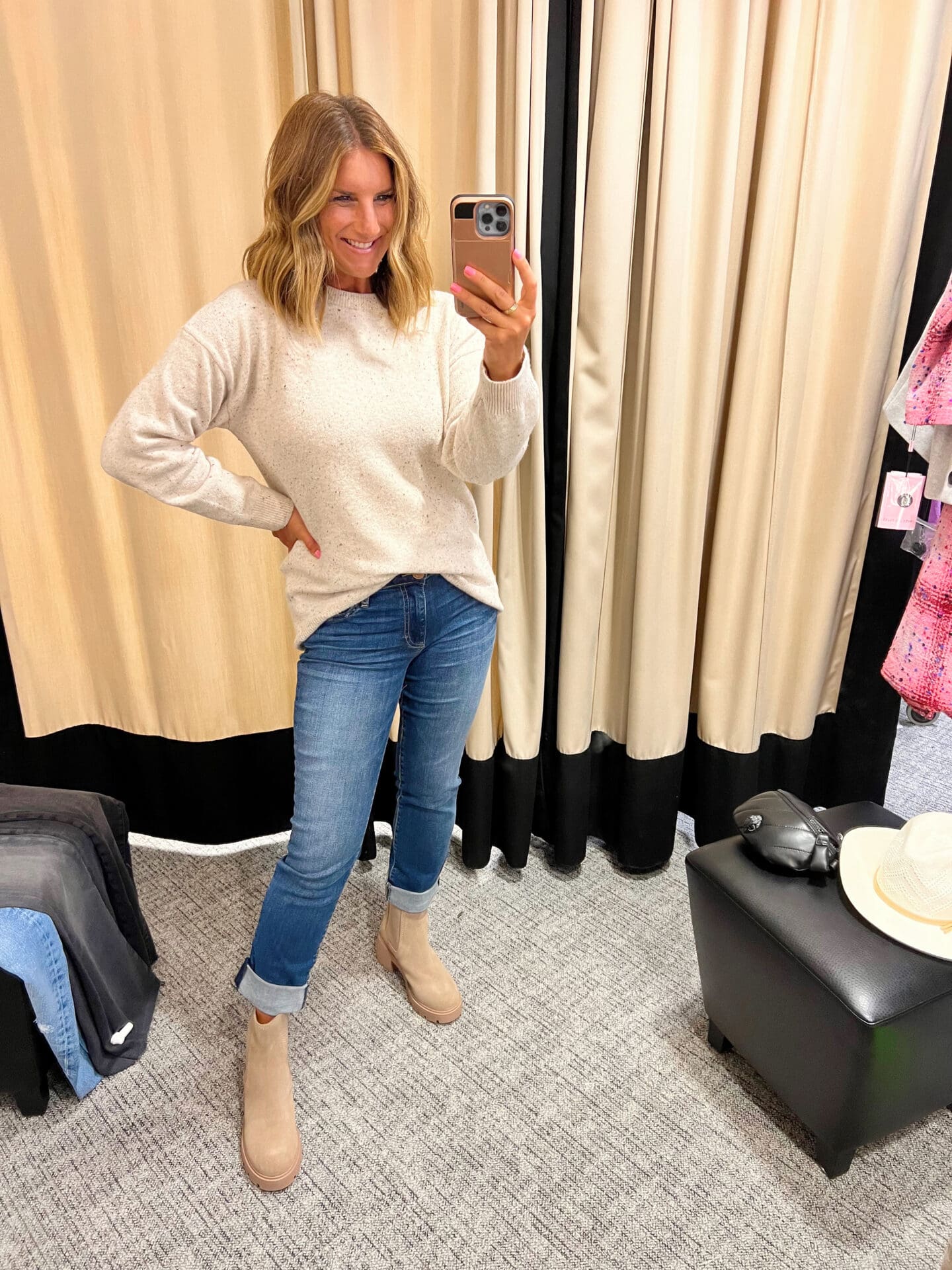 Halogen Sweater [true to size, wearing small] / Kut from the Kloth Jeans [size down, wearing a 2] / Aquatalia Booties [true to size, so comfortable!]