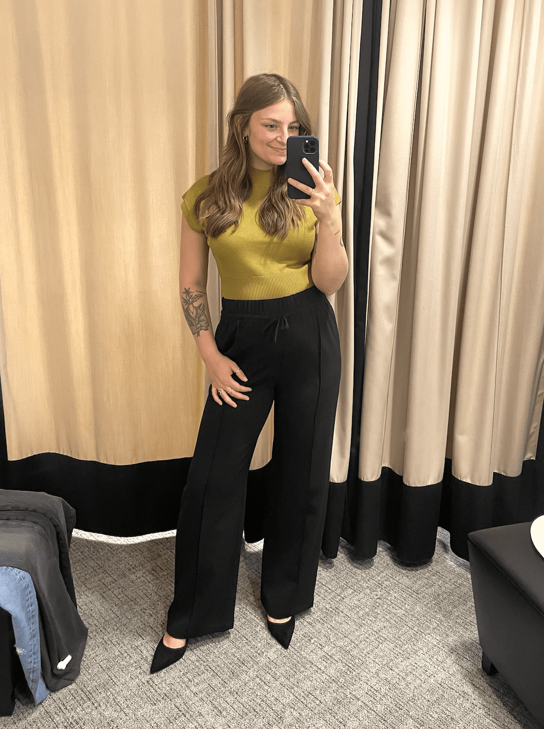Open Edit Mock Neck Top [TTS, wearing in size small and 28 weeks pregnant] Treasure + Bond Wide Leg Pants [TTS, wearing in size small and 28 weeks pregnant] / Sam Edelman Pumps [TTS, wearing size 8]