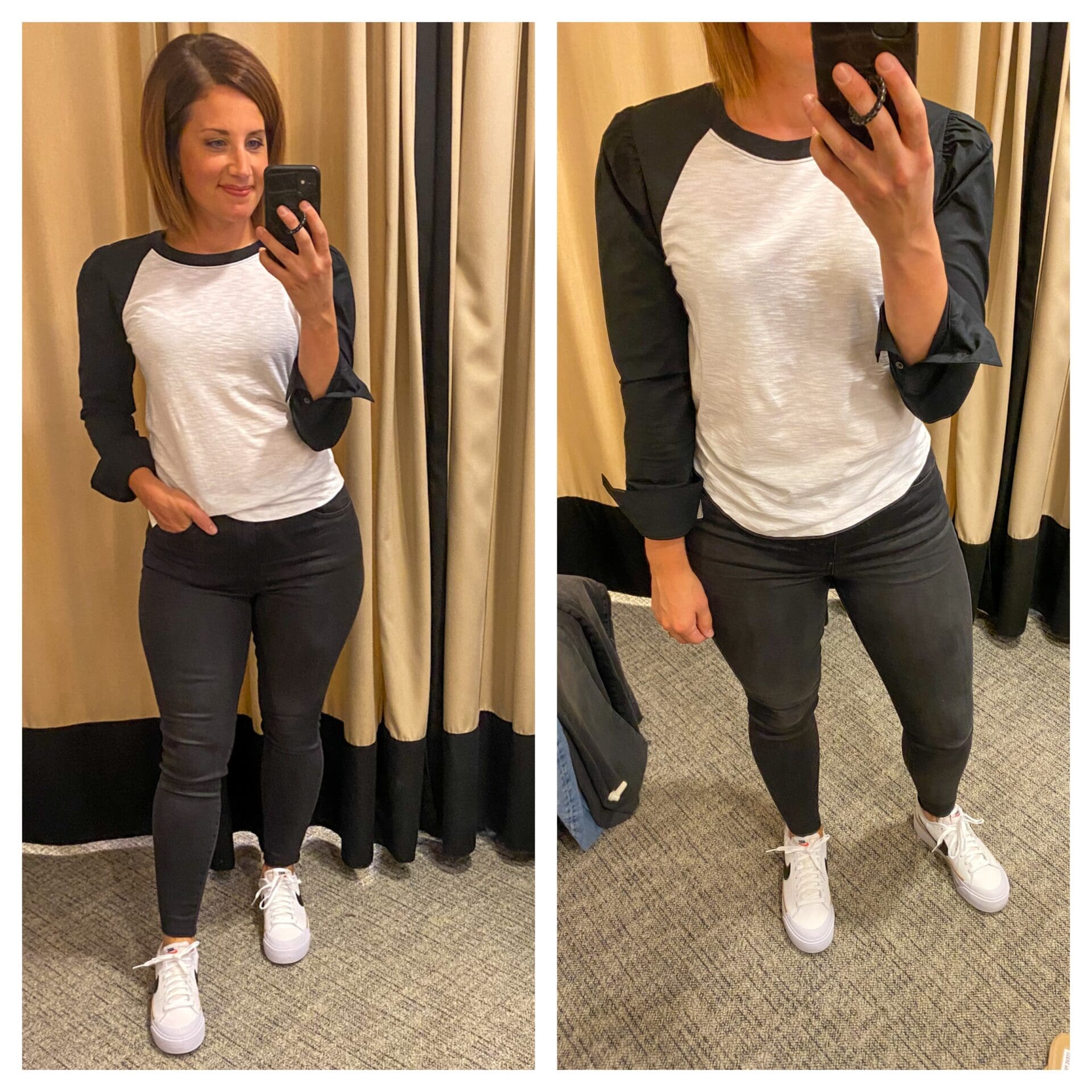 Veronica Beard Mixed Media Top [TTS, wearing in XS] // Kut from the Kloth Jeans [TTS] // Nike Platform Sneakers [TTS]
