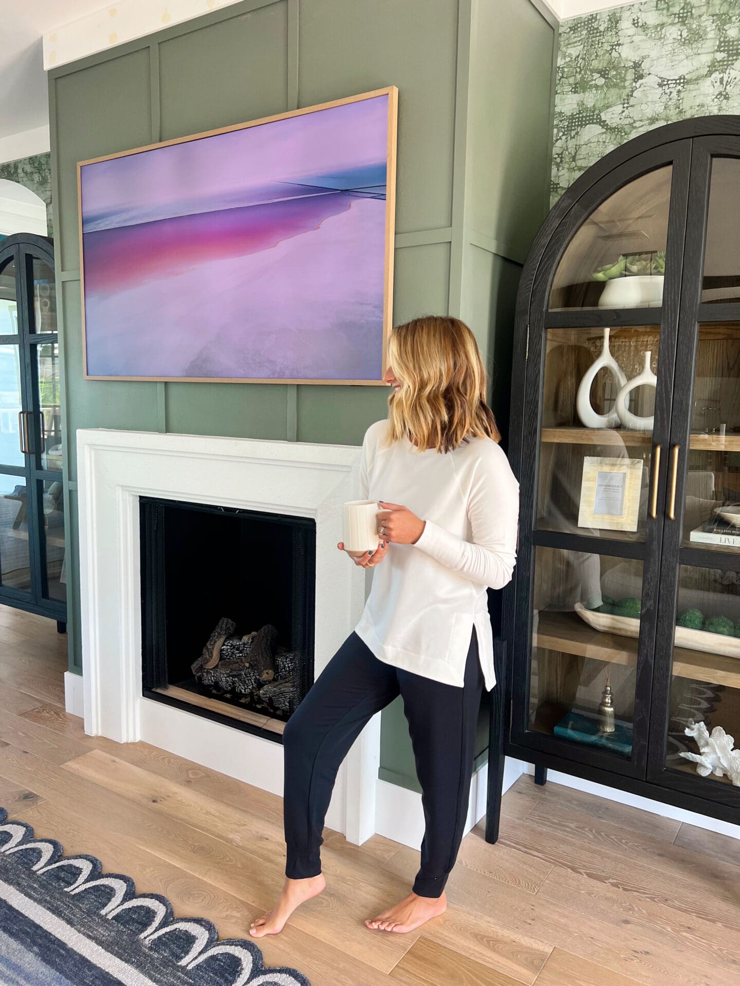 Next up, this Cozy Karma Twist Sweatshirt is what sweatshirt dreams are made out of. Can we talk about this color for a second?! Big green fan over here [if you can’t tell from my living room above] and if there’s ever a goal I’m trying to achieve it’s the goal of dressing just like my home 😉 Between the zippered pockets, crazy soft fleece inside, and the unique twist neckline, it’s a unique piece to gift!