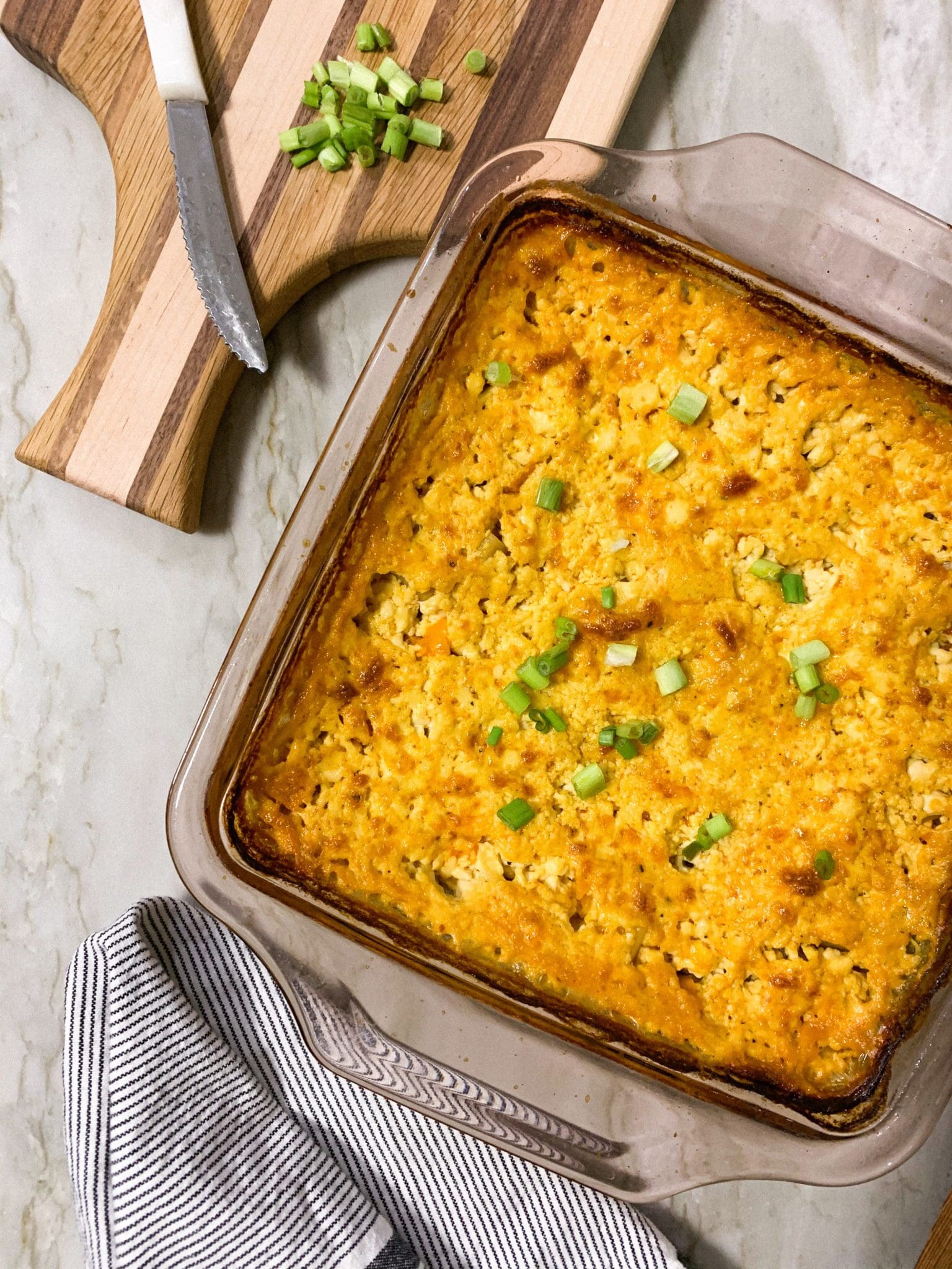 I have been taking this casserole to Christmas brunch with my family for years! Here’s why I love it – it’s a nice way to break up all of the egg casserole dishes, it’s hearty to keep you full, it’s very minimal work in the morning (I mix it up the day before and just bake it in the morning), it’s got red and green peppers making it nice and festive. My husband loves having leftovers of this casserole around because it reheats really well. For the week after Christmas – let’s be real the leftovers only last a couple of days! – he’ll make a scrambled egg, heat some of this up, throw his egg on top and BAM, instant skillet breakfast with minimal work.