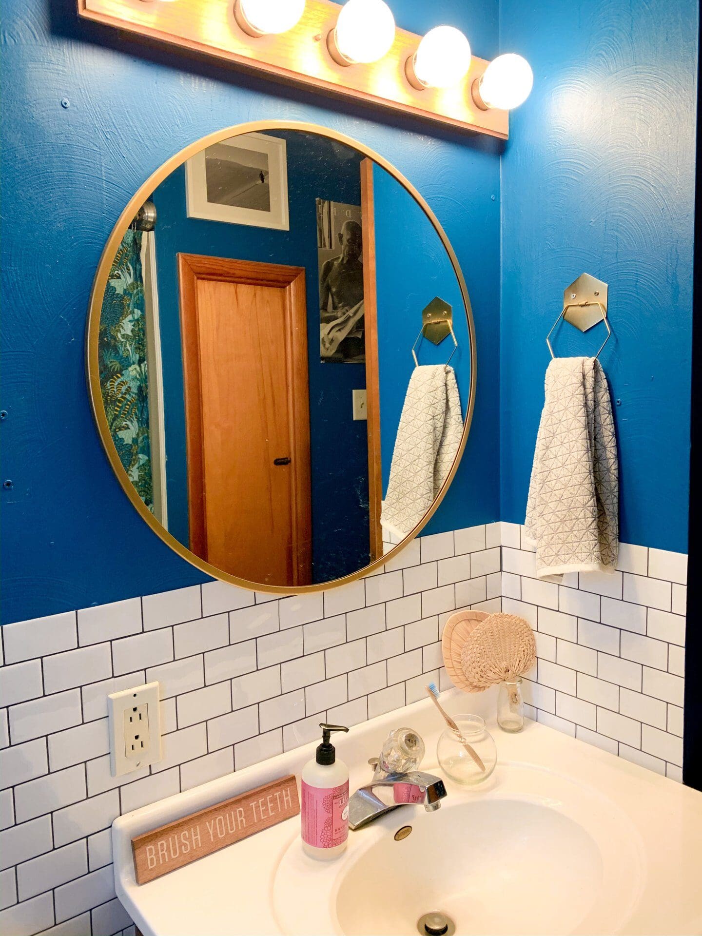 Peel & Stick Flooring [in Oak] // Faucet // Lights // Cabinet Pulls // Wall print