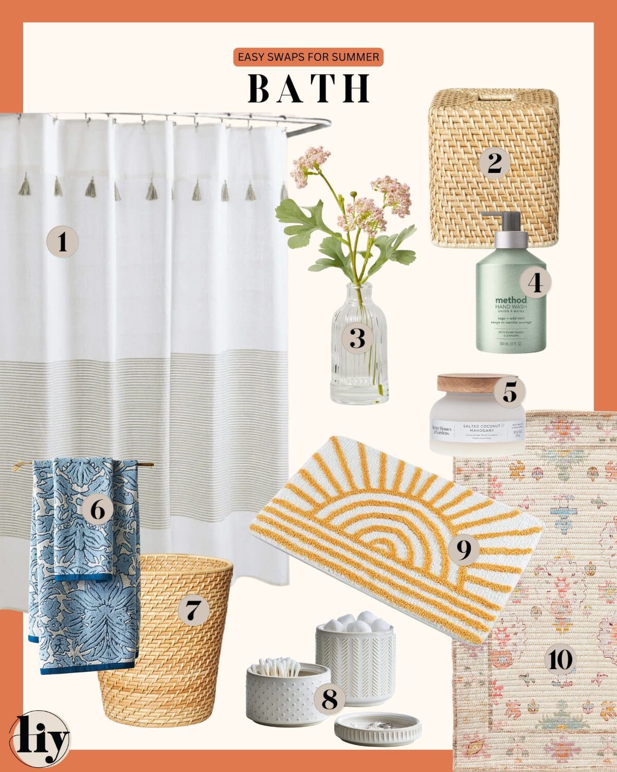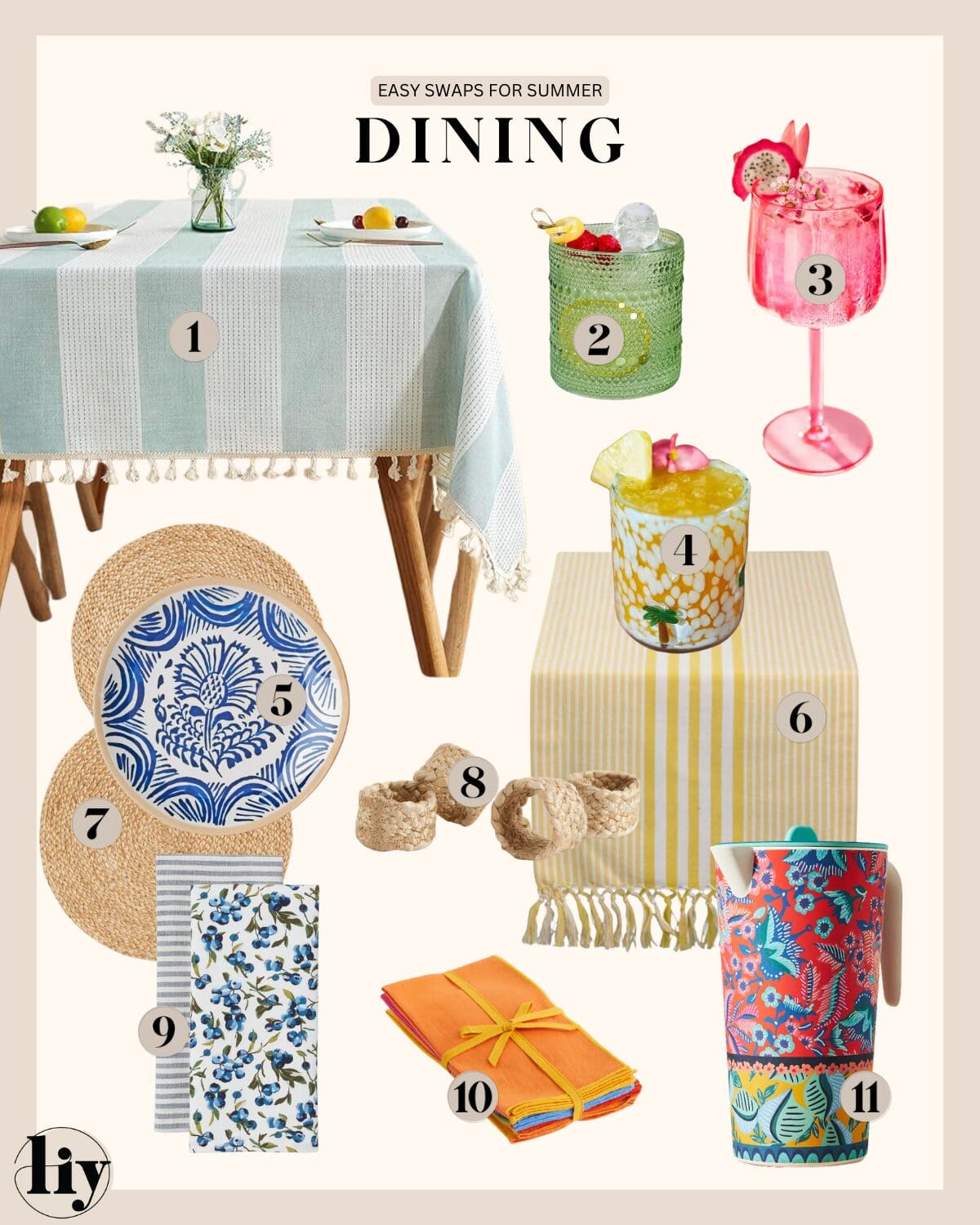 The burgers are grilling, the pools are open, and the watermelon is being sliced – sunshine season is here! ☀️ I don’t know about you, but we love adding a little more POP of color to anything and everything we can in the Summertime; including our homes! Decorating for each season doesn’t mean you have to do an entire room revamp, but there are so many simple ways to switch up your decor for the Summer season! We have given ideas and picks for each room + outside here! CHEERS to sweet Summertime! 🌺