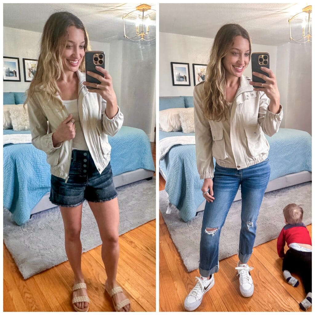 Utility Jacket [true to size] // Shorts [size down if in between] // Tank [size down if in between] // Similar Jeans // Sandals [true to size] // Sneakers [true to size]