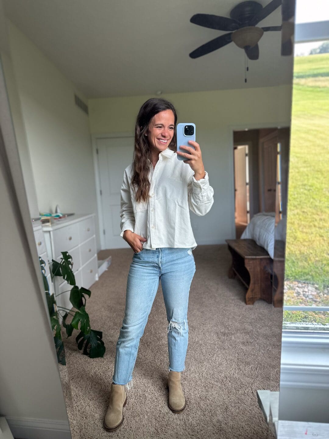 Madewell Corduroy Button Up [true to size] // Similar Jeans // Boots