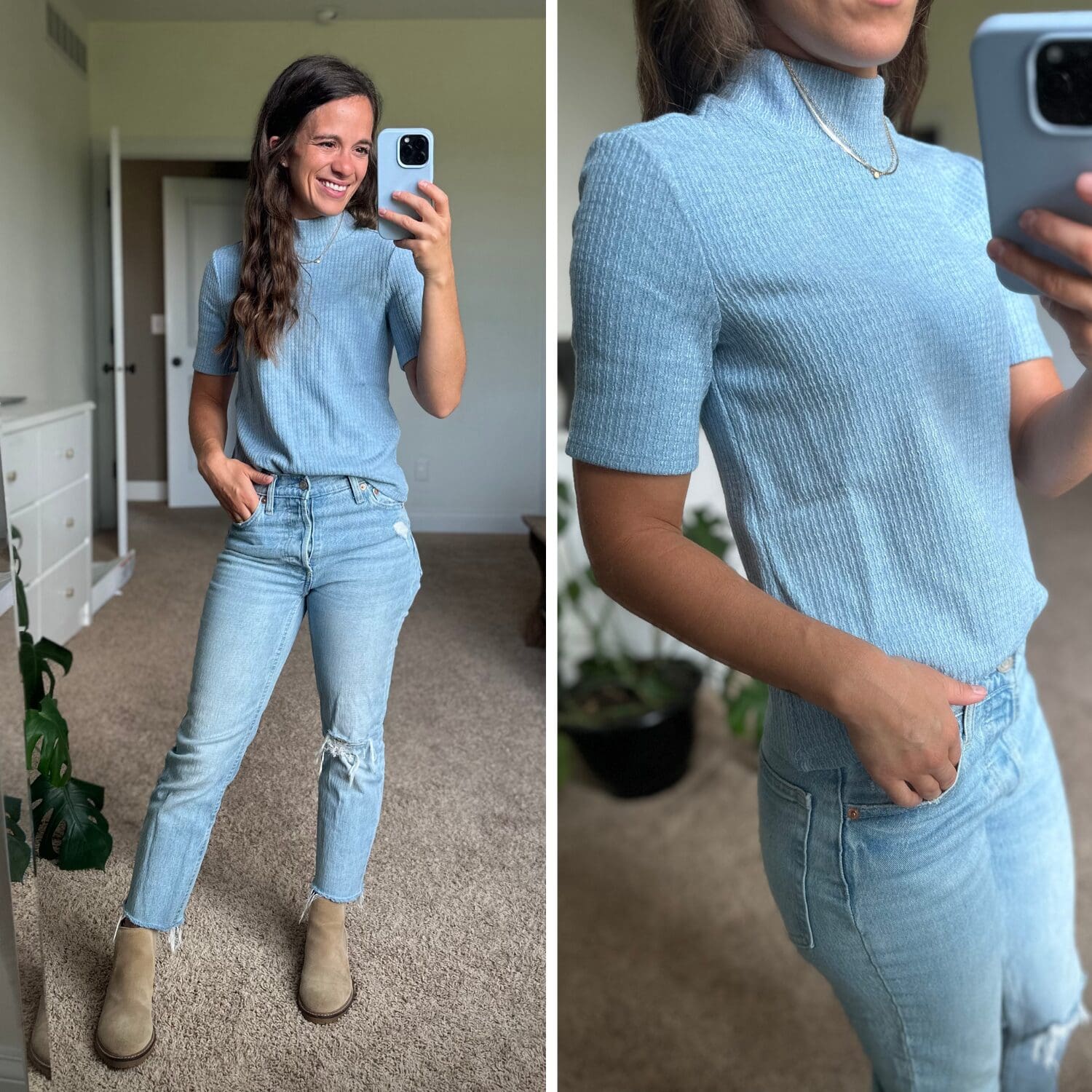 Halogen Mock Neck Top [true to size] // Similar Jeans // Boots