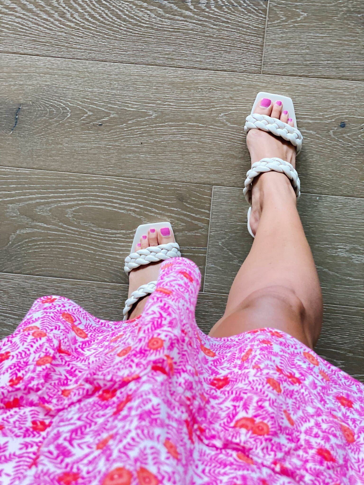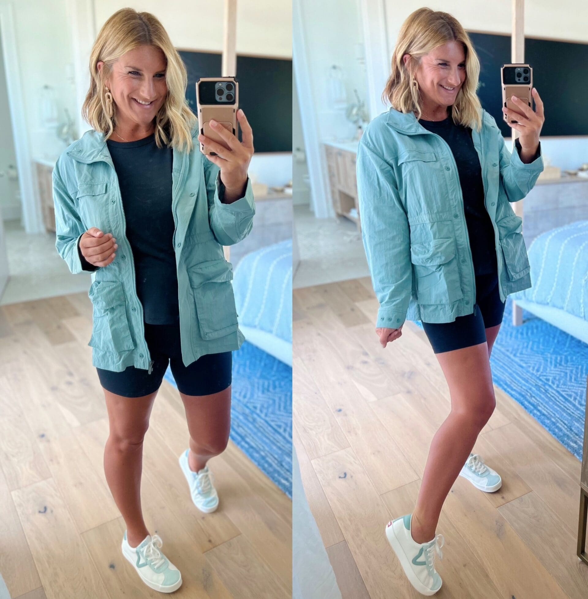 Crewneck Sweatshirt [size down, wearing medium] // Biker Shorts [size up if in between, wearing large] // Denim Shorts [TTS, wearing large] // Black Sandals // Tan Sandals