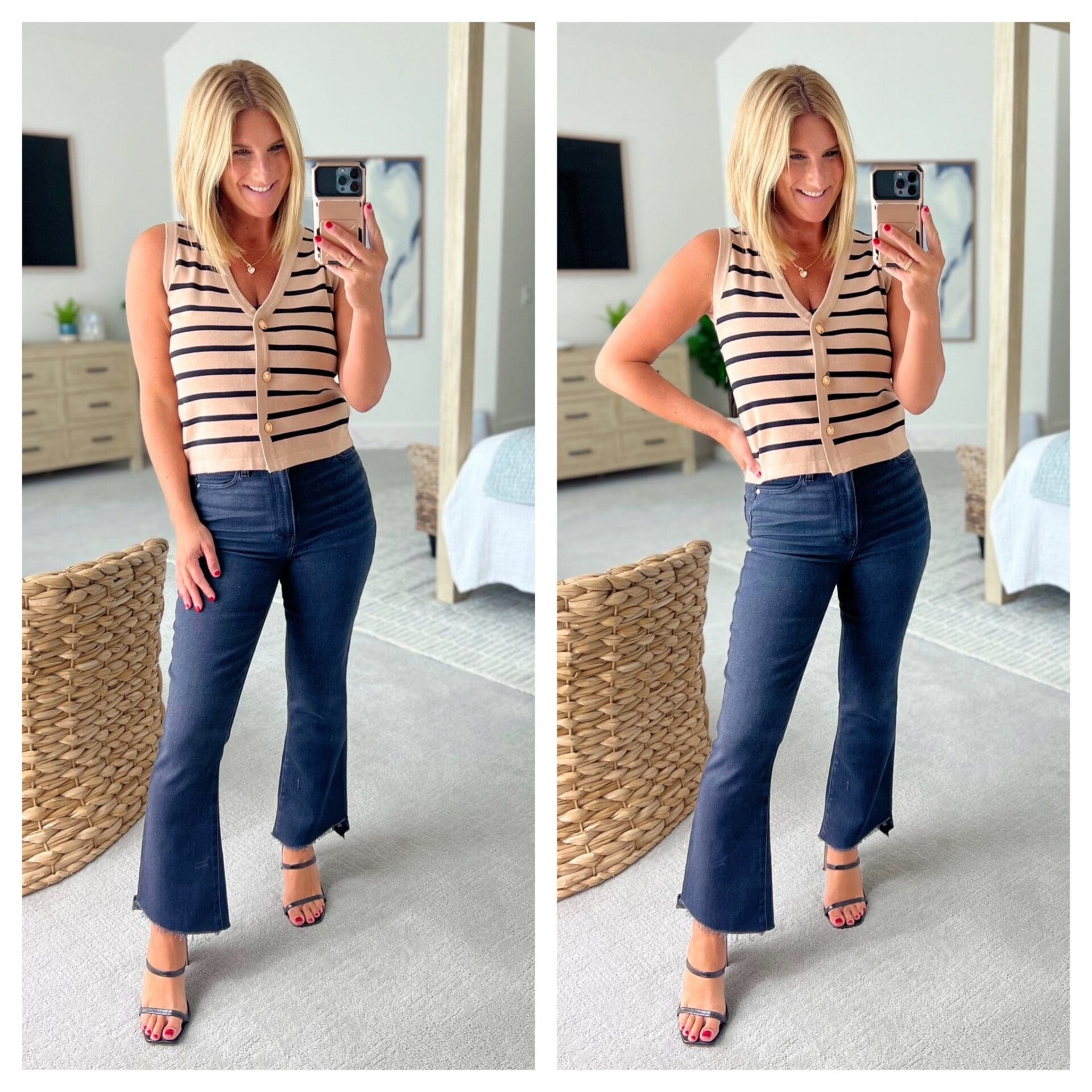 Vest [true to size, wearing in Small in Khaki-Black] // Similar Jeans // Heels [true to size]