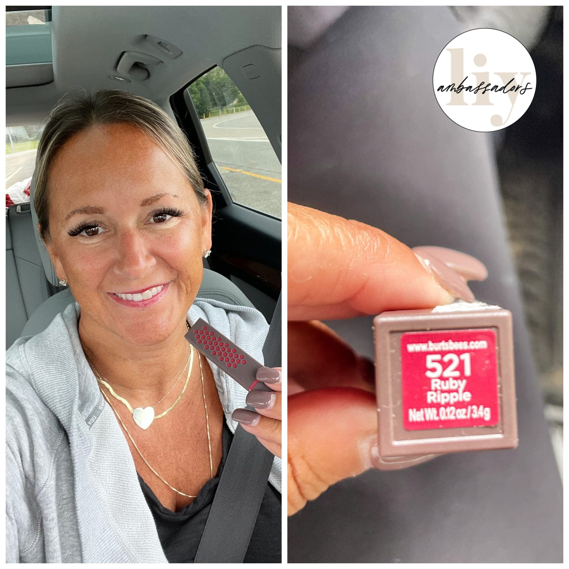 Burt’s Bees 100% Natural Moisturizing Lipstick [wearing color Ruby Ripple]