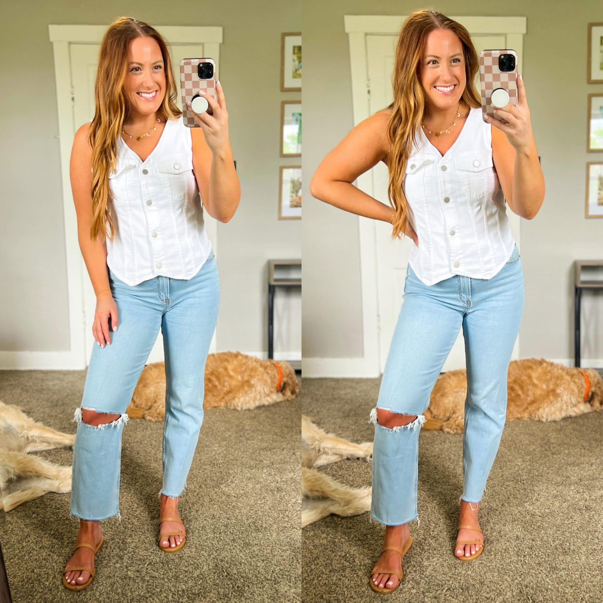 Abercrombie Denim [true to size, wearing 29] // Denim Vest [True to size, wearing medium] // Similar Sandals