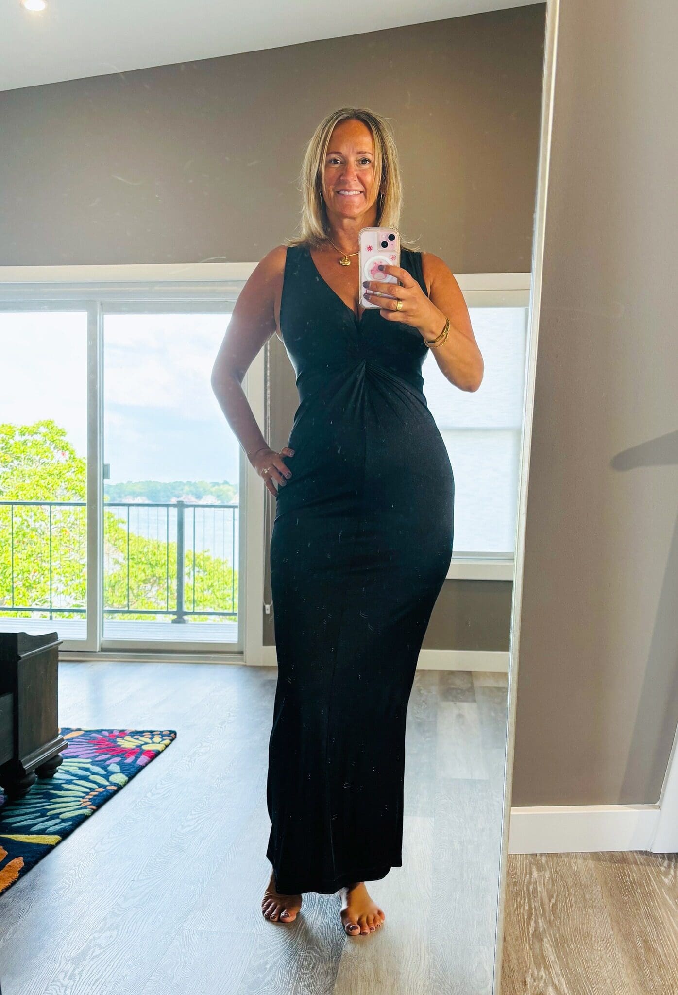 This dress came up in my feed soooo many times, that I felt like it was geared towards me! It has BUILT IN shape wear, and is the perfect length for my 6 foot frame! This dress comes in champagne, blue and black, and is crazy comfortable, and would be perfect for upcoming holiday events, or a wedding! It’s a little tricky getting on due to the full shape wear, but definitely worth the struggle!